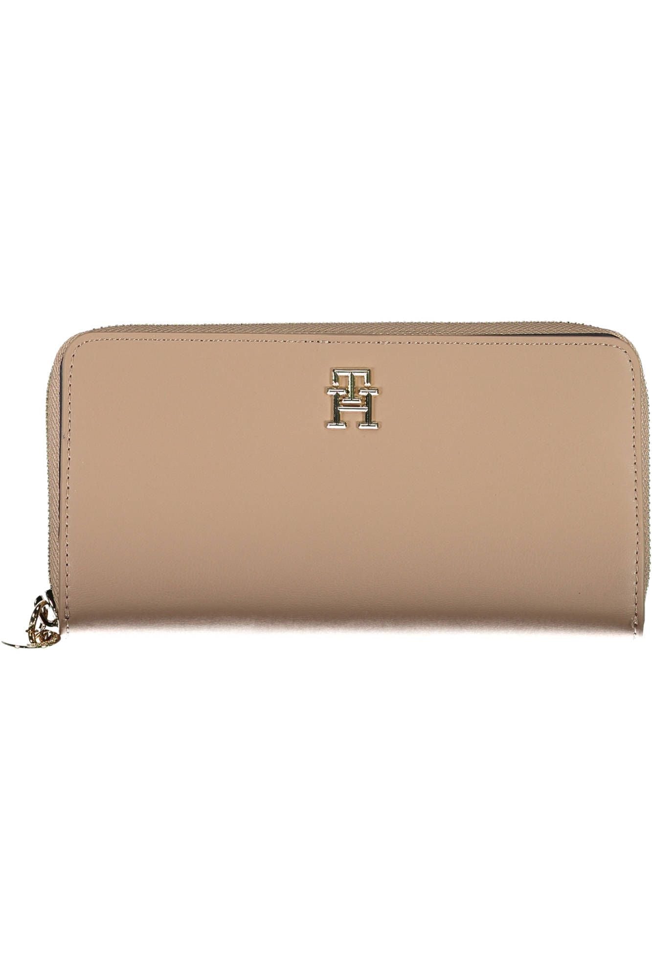 Discover the perfect blend of functionality and style with this beige wallet, showcasing the iconic logo, dual compartments for easy card organization, and secure zip and snap closures. Ideal for the modern woman on the go, this wallet is crafted with high-quality polyurethane, ensuring durability and a luxe finish. Experience the effortless elegance offered by Tommy Hilfiger and keep your essentials neatly organized.