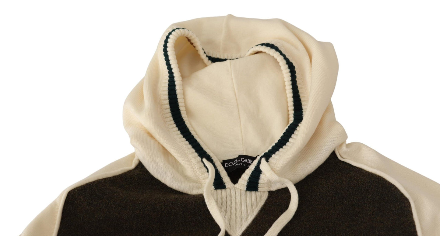 Indulge in Italian luxury with this sumptuous beige hooded sweater from Dolce & Gabbana. Perfect for a sleek look with a touch of comfort, this stunning pullover promises to be a versatile addition to your wardrobe. Featuring the brand’s subtle logo details, this piece embodies understated elegance, directly from the heart of Italy.