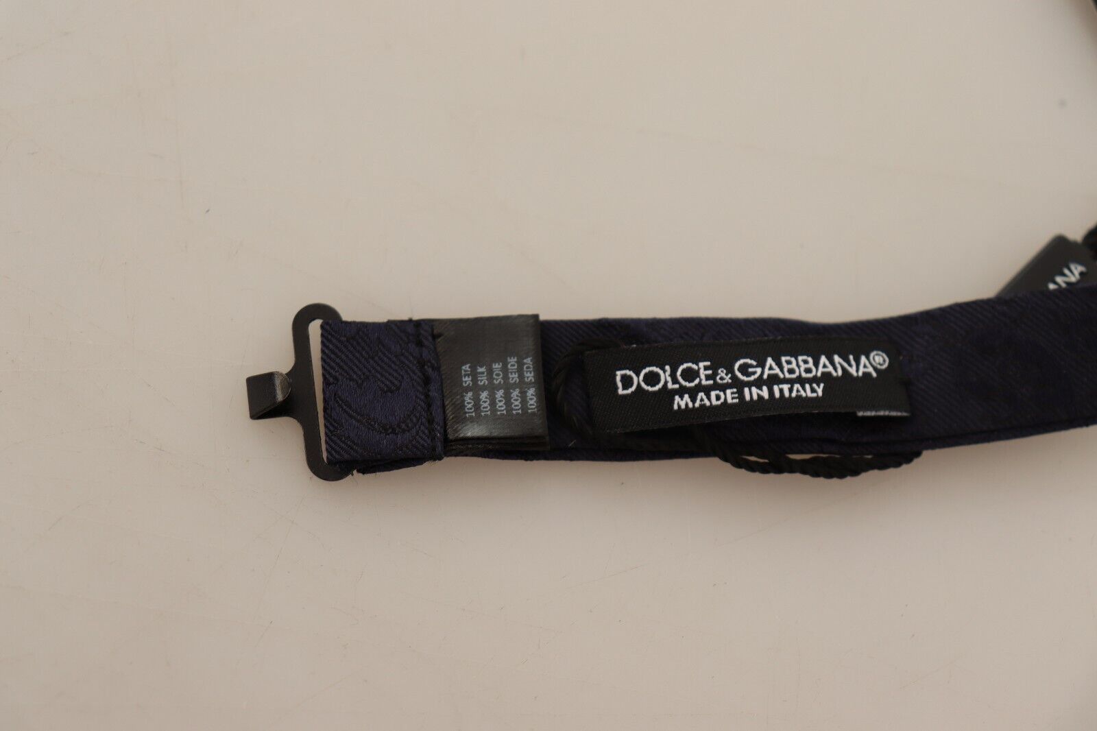 Step into the spotlight with an air of elegance with this 100% Authentic, brand new Dolce & Gabbana silk bow tie. With its lustrous black hue and a sophisticated metal clasp design, this piece is a timeless addition to your formal attire. Crafted in Italy with impeccable attention to detail, it features an adjustable length neck strap for a perfect one size fit. Whether for a gala or a special night out, this Dolce & Gabbana bow tie is sure to elevate your ensemble.
