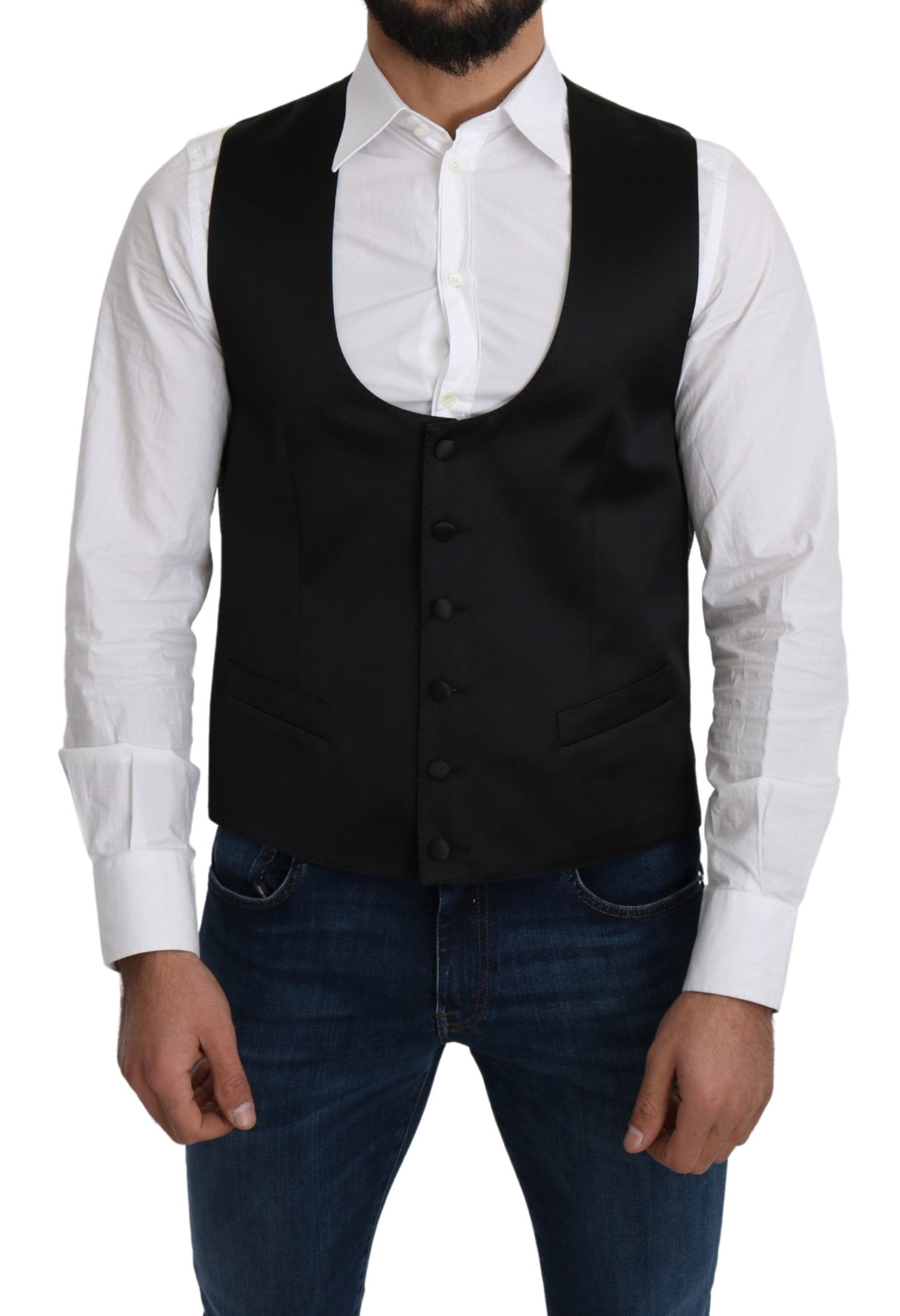 Elegant Black Silk Formal Vest