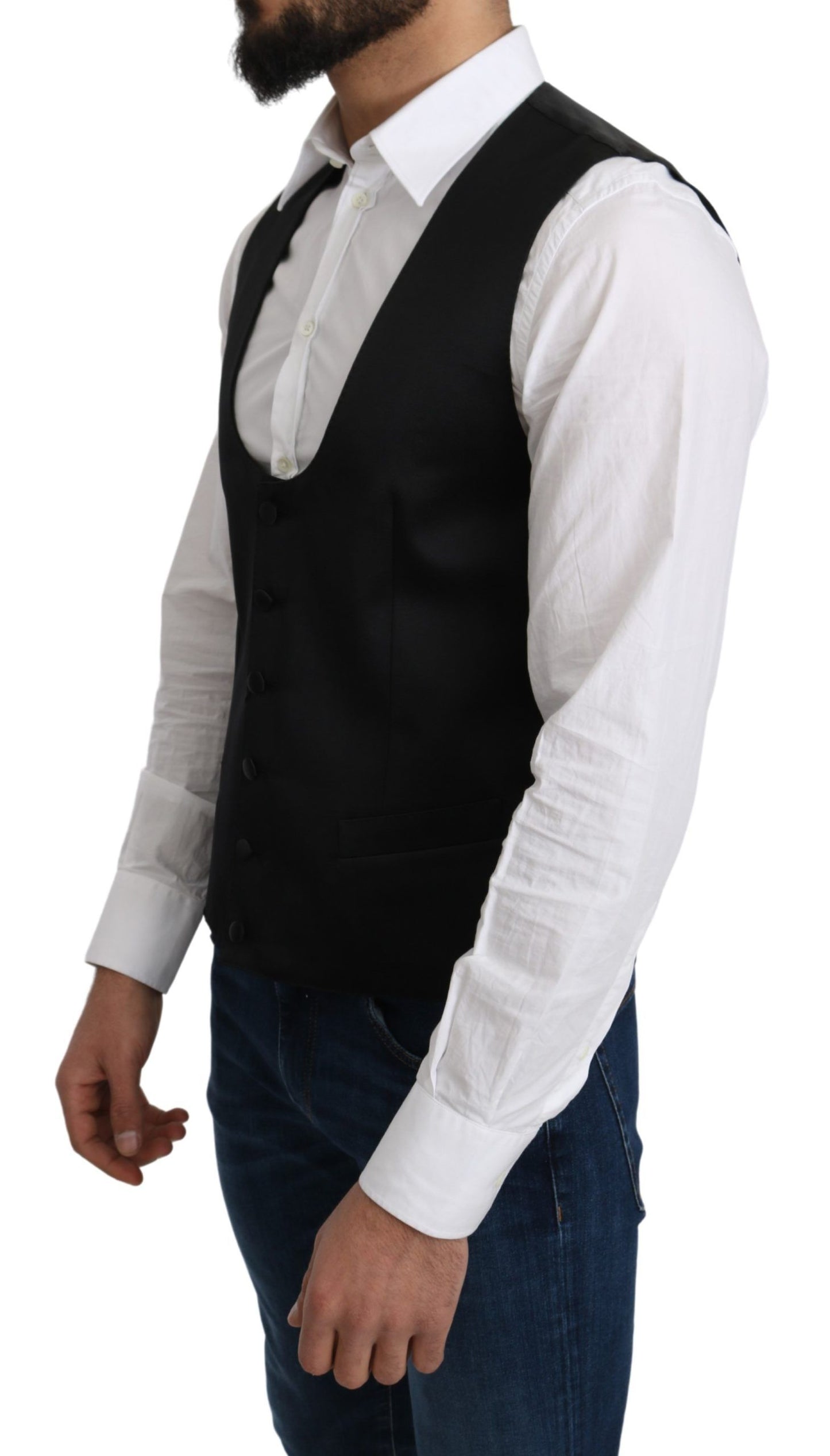 Indulge in the epitome of sophistication with this Dolce & Gabbana formal vest, a must-have addition to your discerning wardrobe. Designed with a full button closure and exquisite logo details, this 100% Authentic vest epitomizes Italian luxury and style. Crafted from sumptuous 100% silk, it provides an impeccable fit and unparalleled elegance for your most significant occasions.