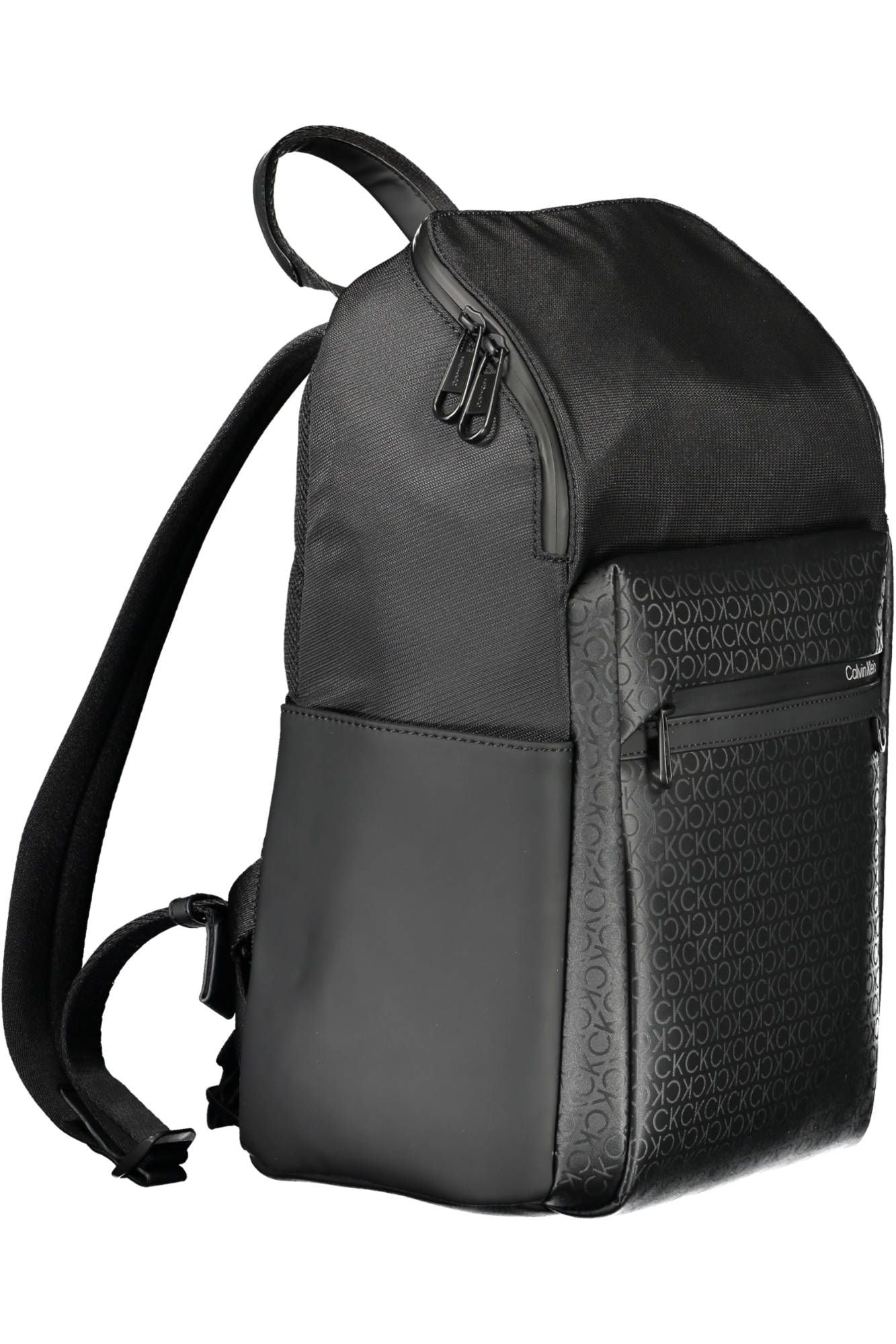 Experience the perfect blend of functionality and style with this sleek black backpack by Calvin Klein. Designed for the eco-aware individual, it’s crafted with 50% recycled materials, featuring a single handle, adjustable straps for comfort, and multiple pockets including a secure laptop compartment and handy pen holders. Contrasting details and the iconic logo add a touch of elegance to this practical accessory.