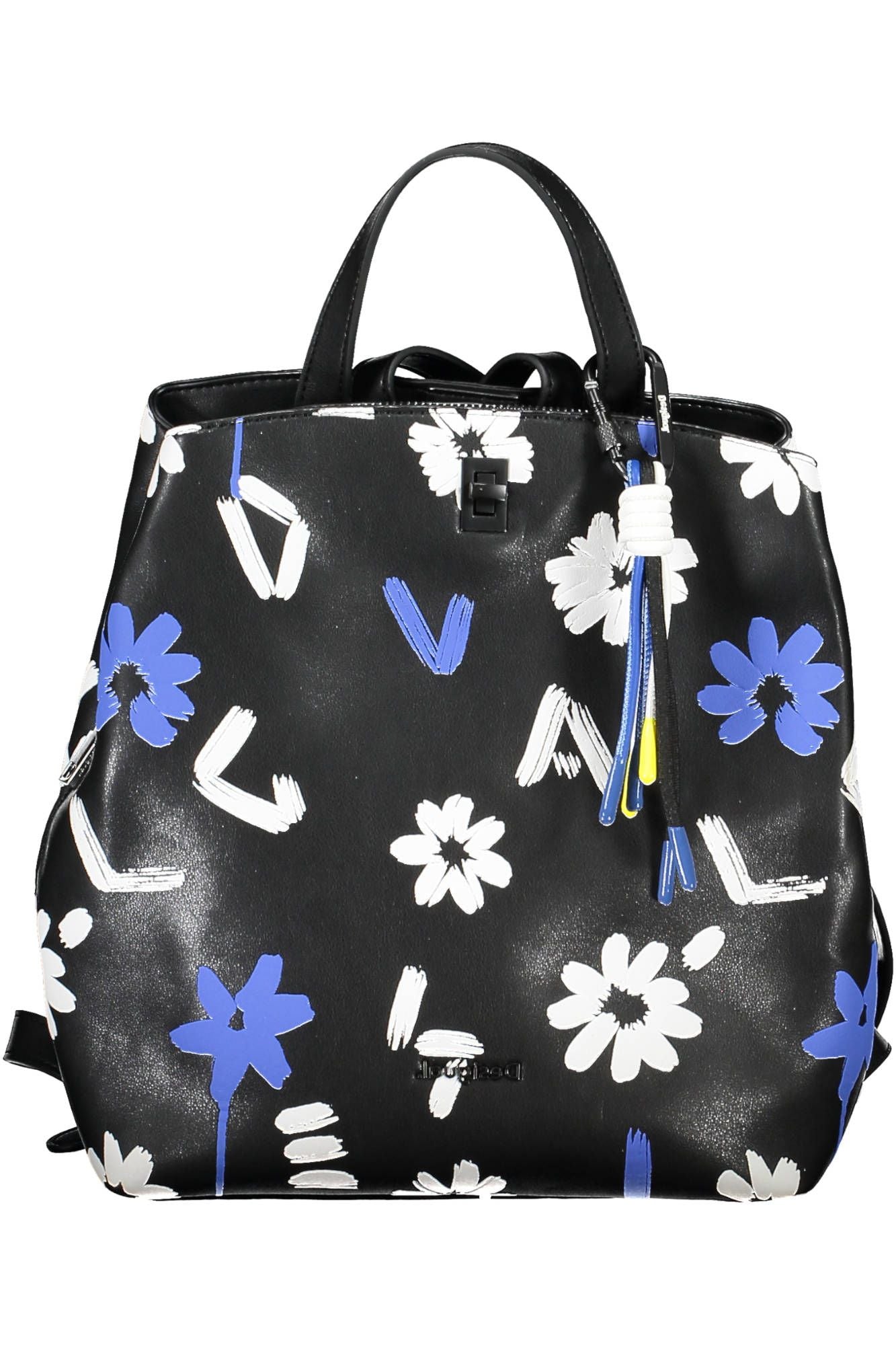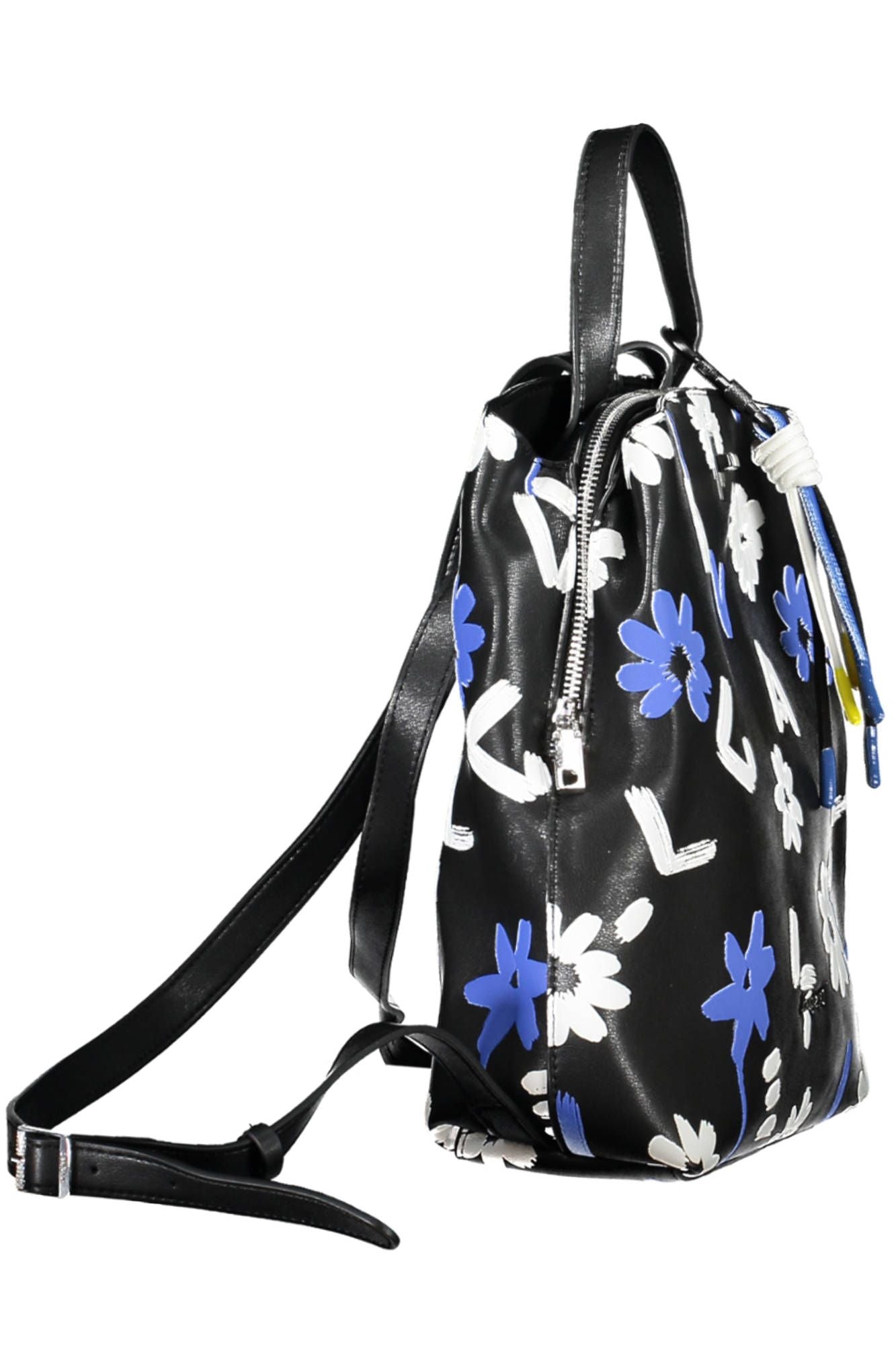 Embrace your on-the-go lifestyle with the Desigual backpack that melds functionality with fashion. Crafted with a sleek black polyurethane material, it features an easy-to-grab handle, adjustable shoulder straps for your comfort, and a secure closure system including a zip, automatic lock, and turn lock. Organize your essentials effortlessly with three separate compartments, an external pocket, and an additional internal pocket. Contrasting details and the iconic Desigual logo add a touch of elegance, making it the perfect accessory for the fashion-forward individual.