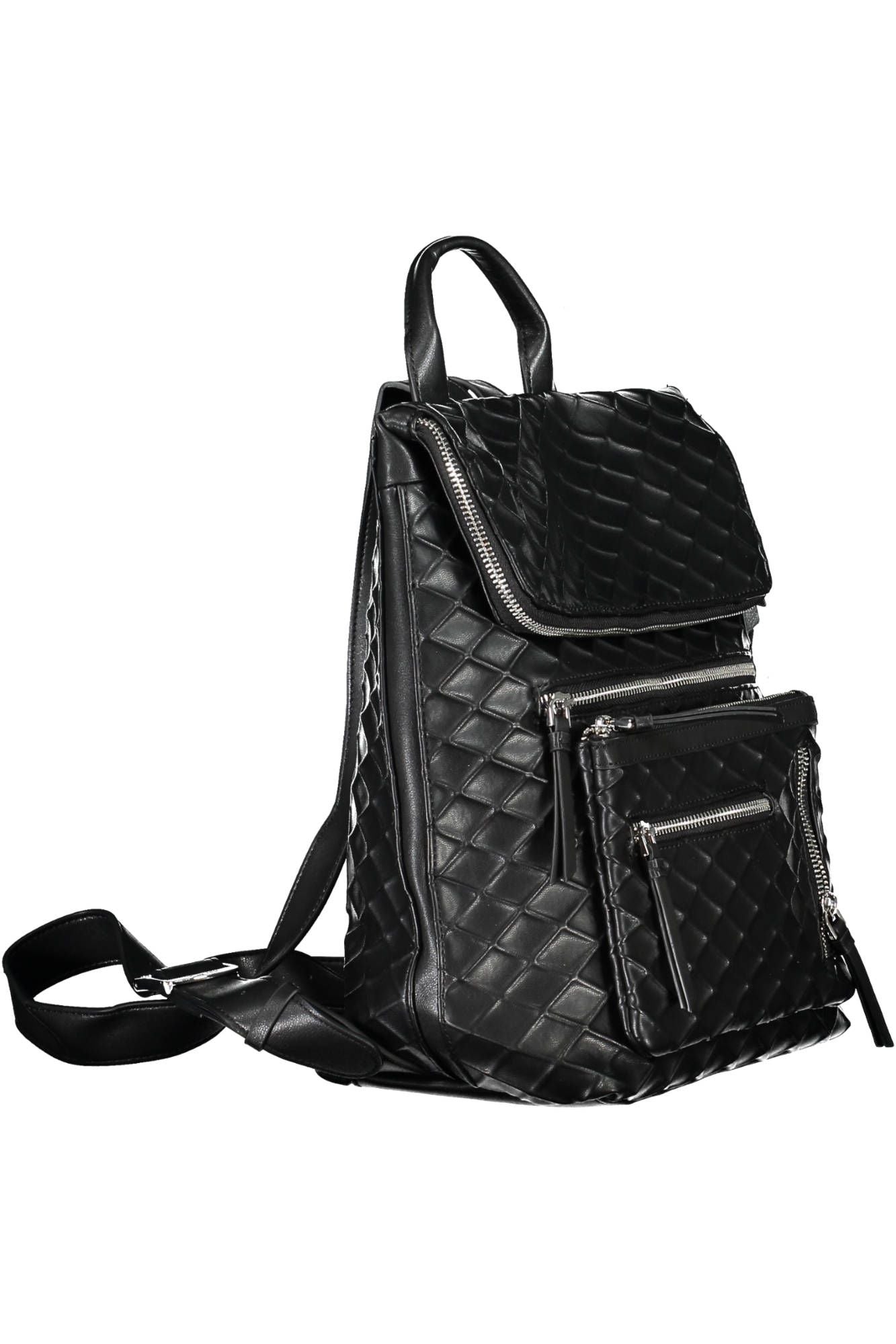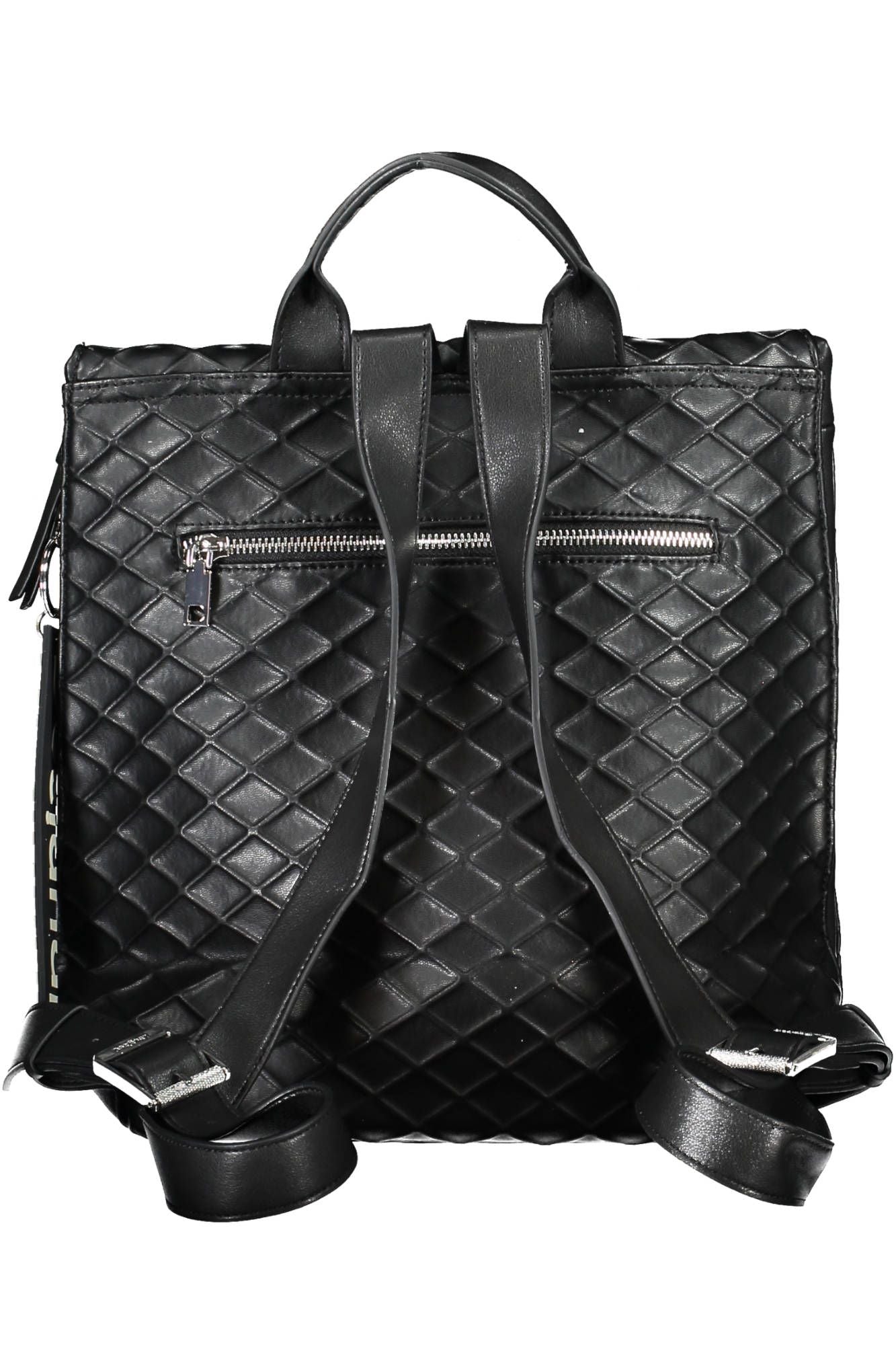 Explore the city in style with this on-trend black backpack, adorned with eye-catching contrasting details. Crafted with practicability in mind, featuring a sturdy handle, adjustable shoulder straps for personalized comfort, and multiple pockets — 5 external and 1 internal — to keep your essentials organized. A secure zip closure and the signature logo add both style and function, making this backpack from Desigual your perfect urban companion.