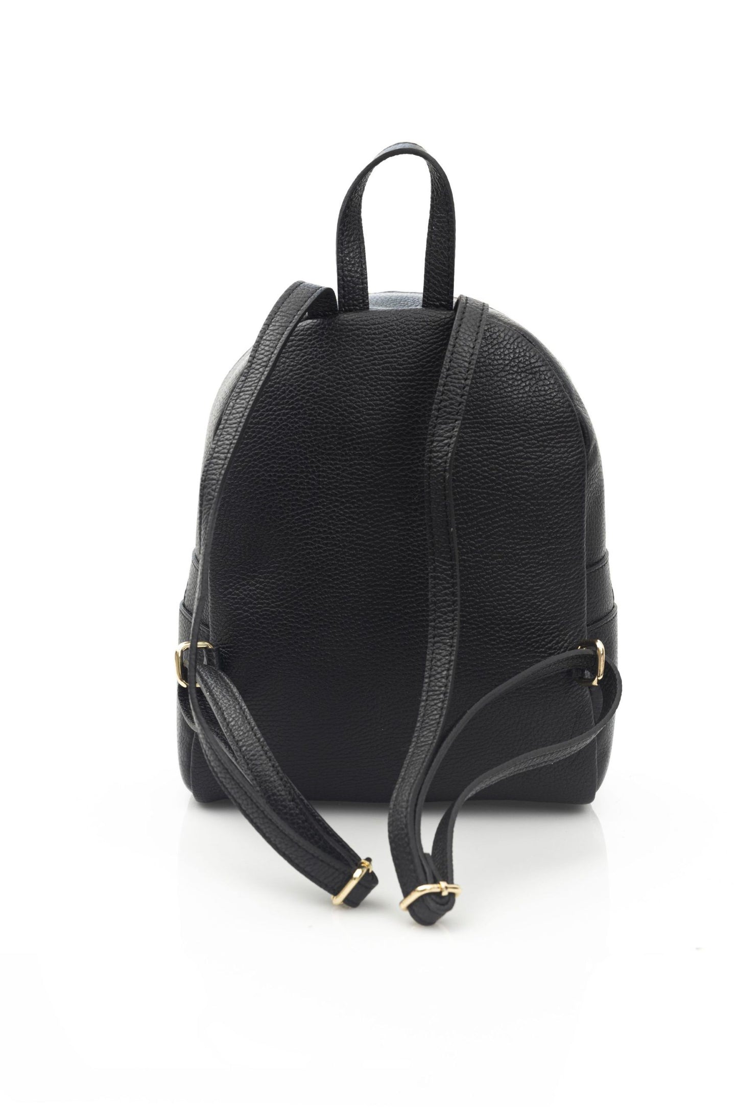 Elegant Black Leather Backpack with Golden Accents