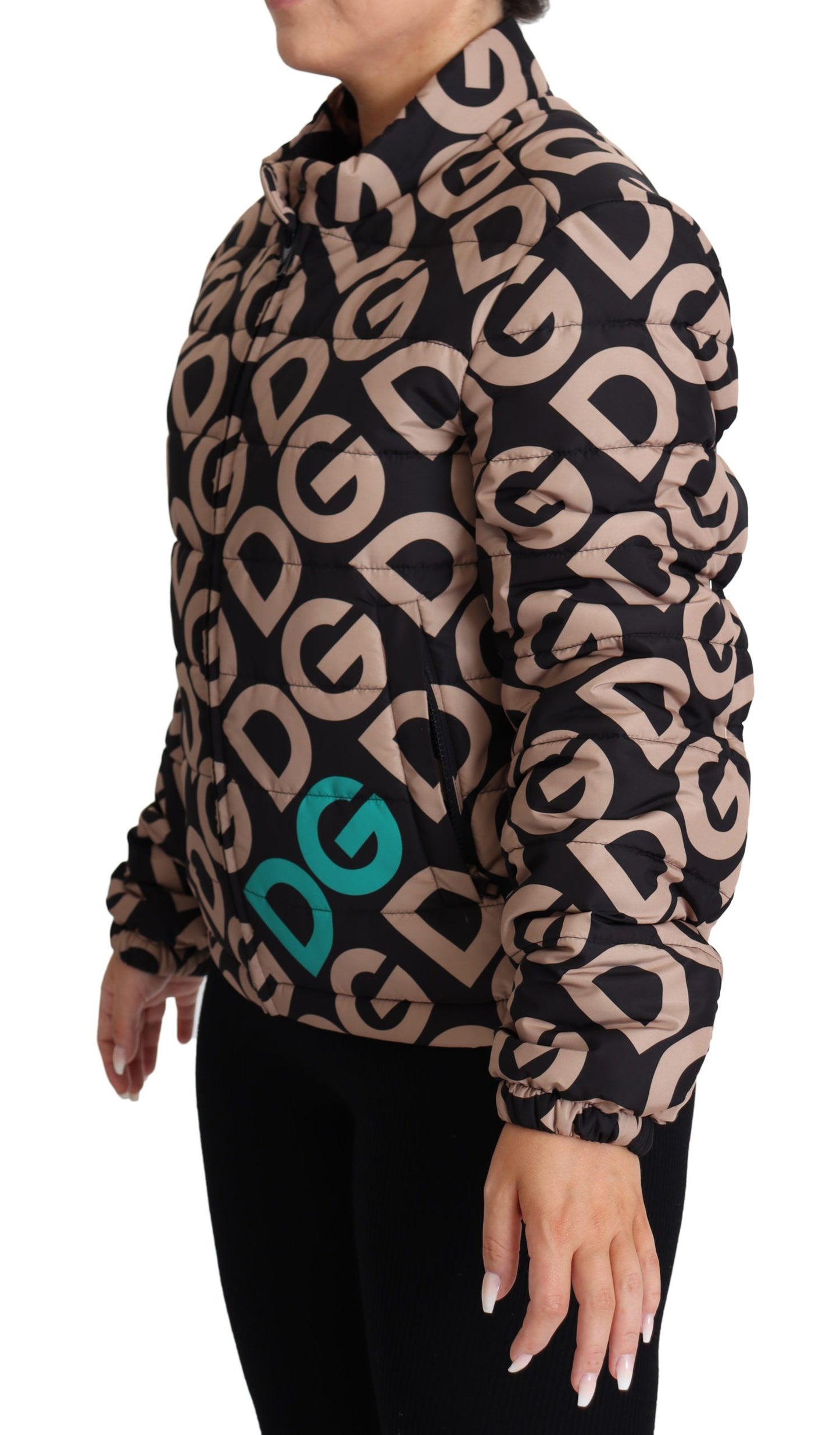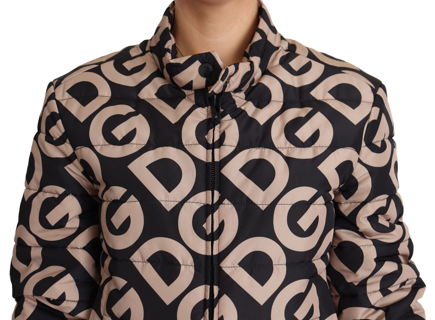 Exude elegance and stay warm with this impeccable quilted puffer jacket from Dolce & Gabbana. This gorgeous, brand new jacket with tags showcases a sophisticated DG logo pattern, a stand collar with a snap closure, long sleeves with elasticized cuffs, and a convenient front zip closure. Meticulously crafted in Italy, this puffer offers an exclusive touch to your wardrobe, combining luxury with practicality.