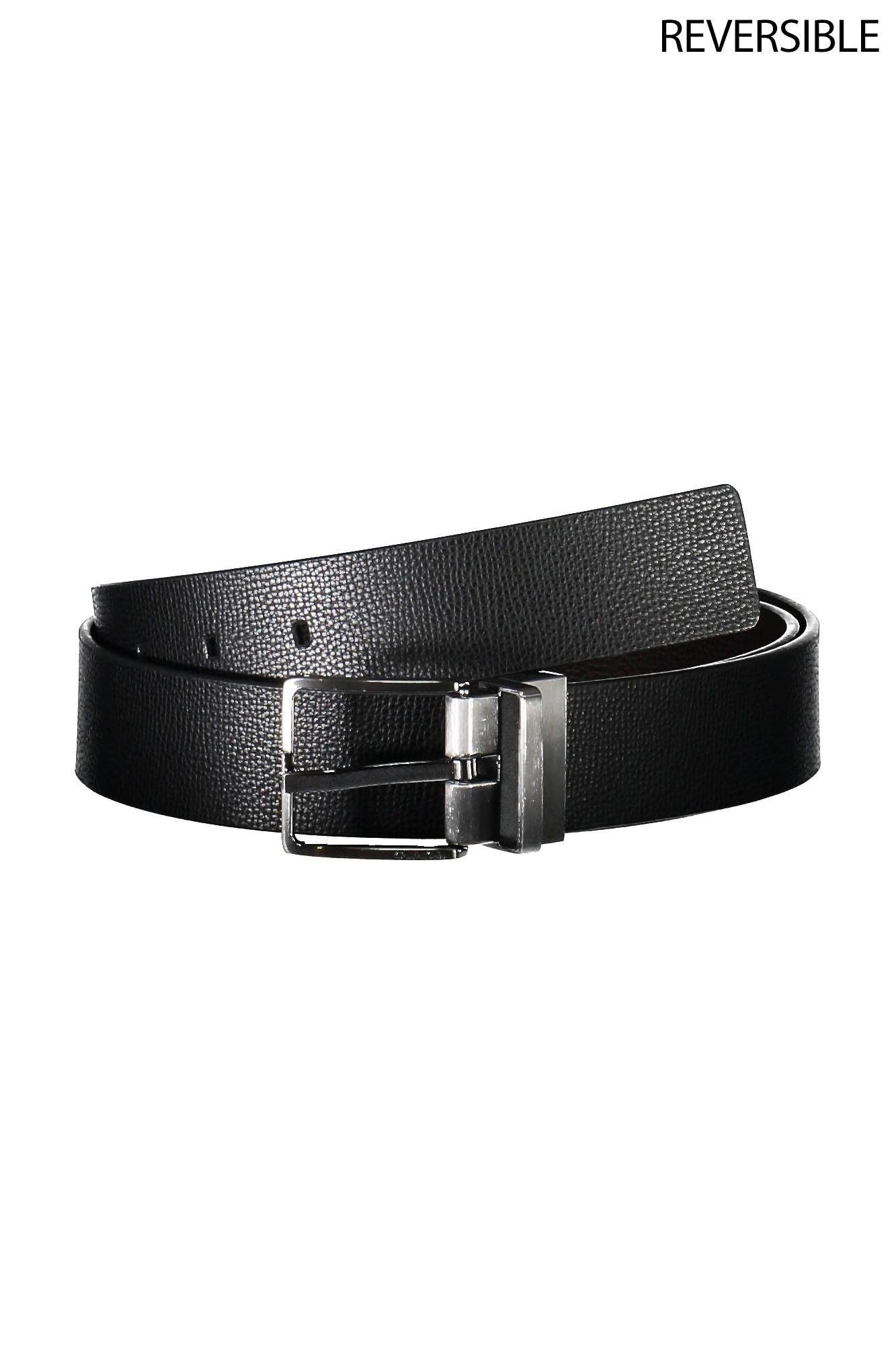 Refine your ensemble with a touch of versatility and elegance. This reversible leather belt offers the ultimate in style flexibility. Boasting a sleek black and a rich brown side, it’s the perfect accessory for a seamless transition from a professional daytime look to an evening out. The polished metal buckle featuring a subtle logo accentuates its luxurious appeal.