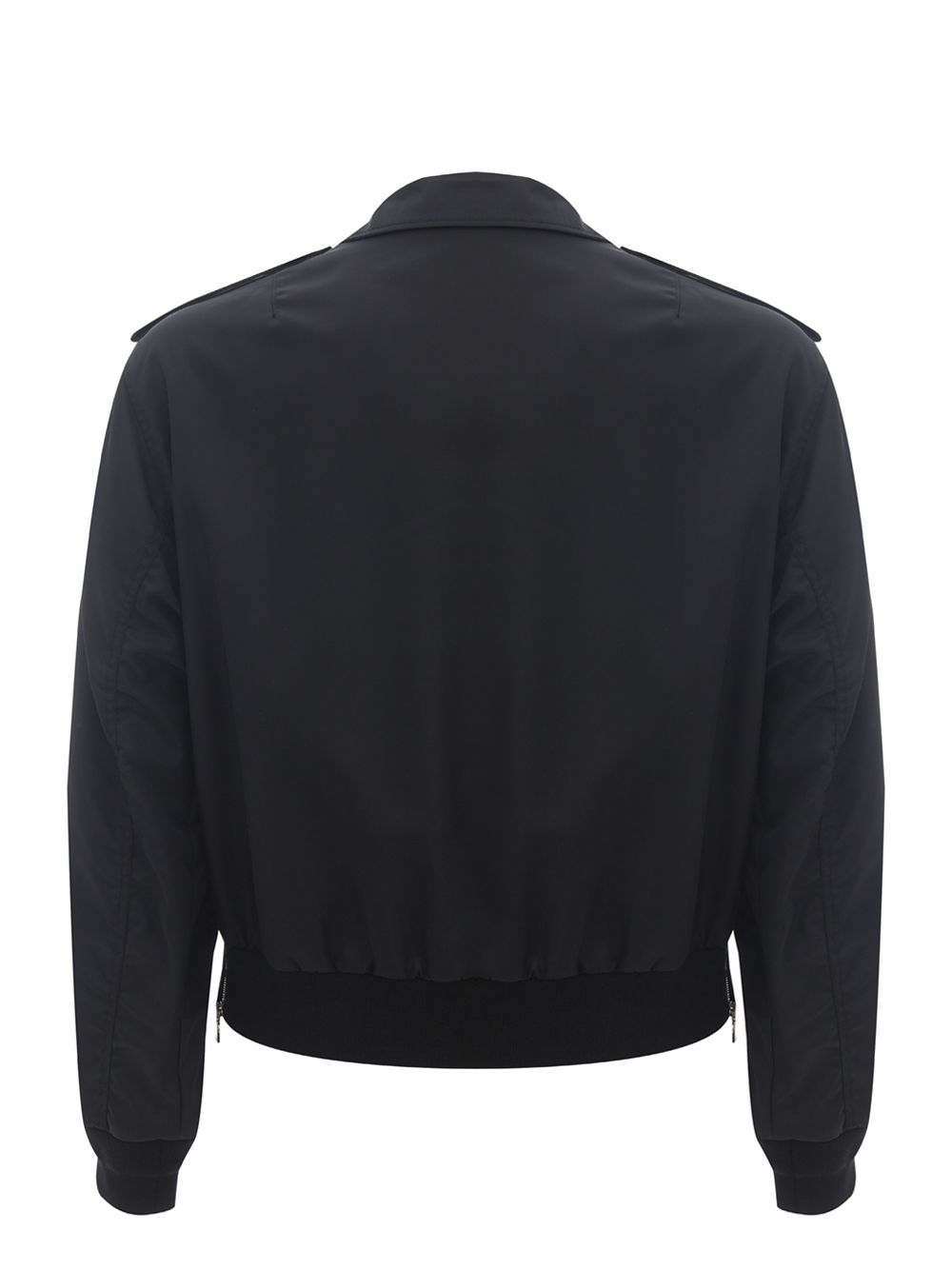 Discover the epitome of Italian elegance in this gorgeous, brand new bomber jacket from Dolce & Gabbana. Crafted from premium polyamide, this black jacket offers a sleek regular fit that’s perfect for an effortlessly stylish look. With a front zip closure and two conveniently placed side pockets secured with automatic buttons, it epitomizes both luxury and practicality. Made in Italy, this piece is a testament to impeccable craftsmanship and timeless design.