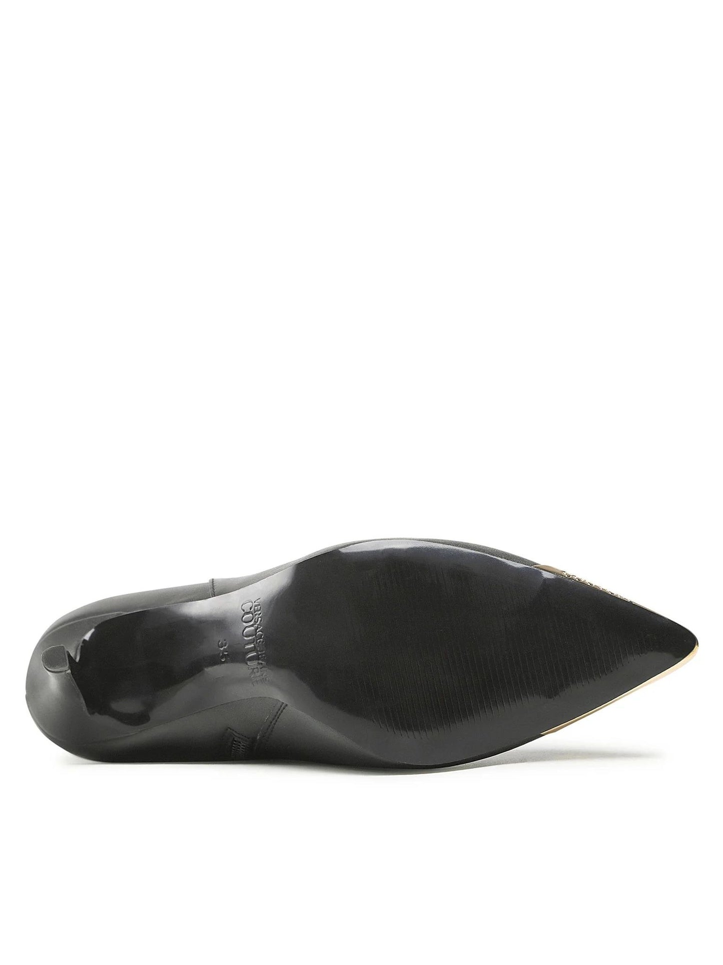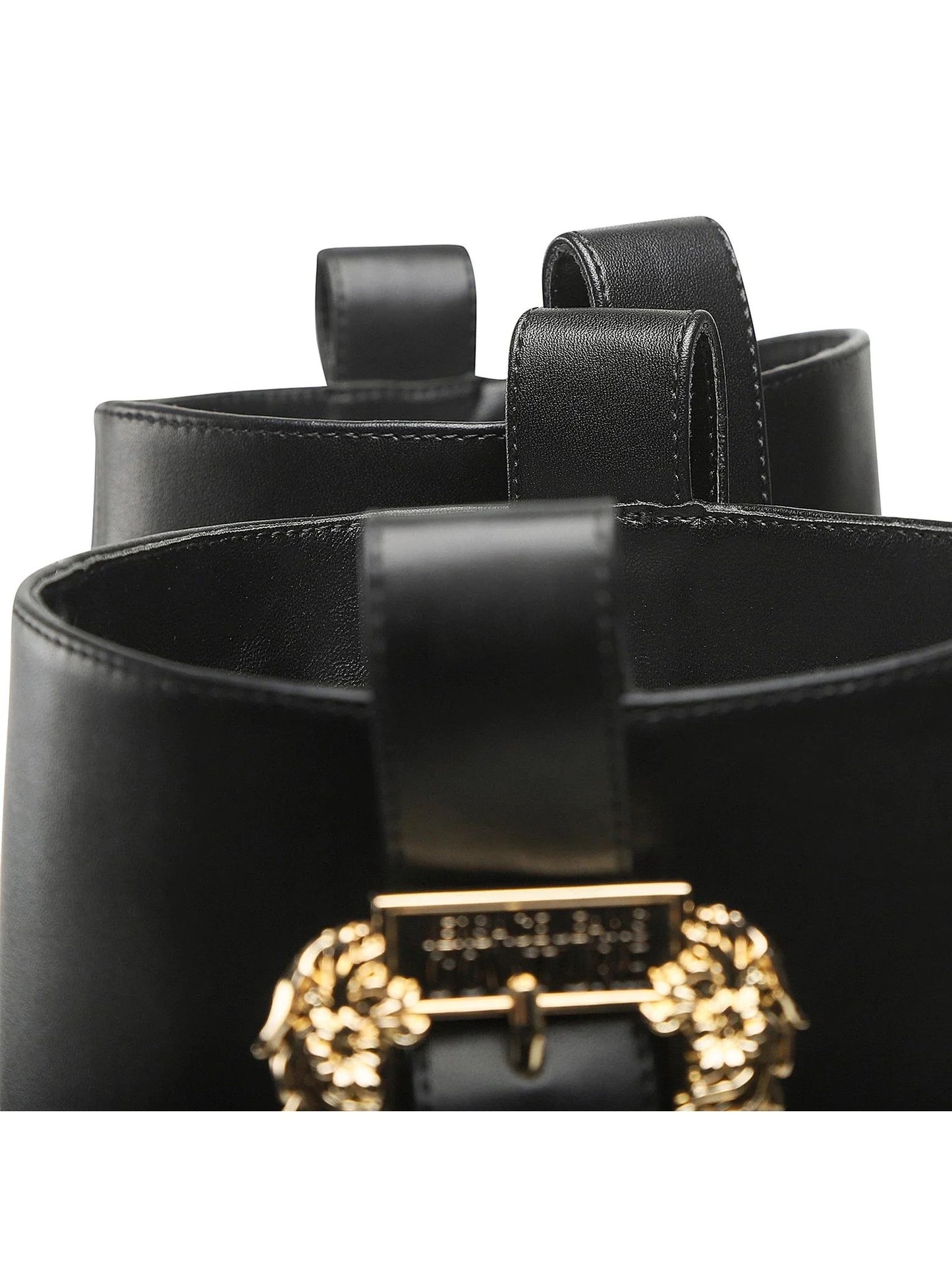 Step into luxury with these elegant knee-high stiletto boots, featuring an eye-catching baroque buckle detail and a sleek metal logoed plaque on the elongated toe. Perfect for making a sophisticated statement, these boots come with a practical side zip fastening for ease of wear and boast a confident 8 cm heel height. Crafted from premium artificial leather for a high-end finish.