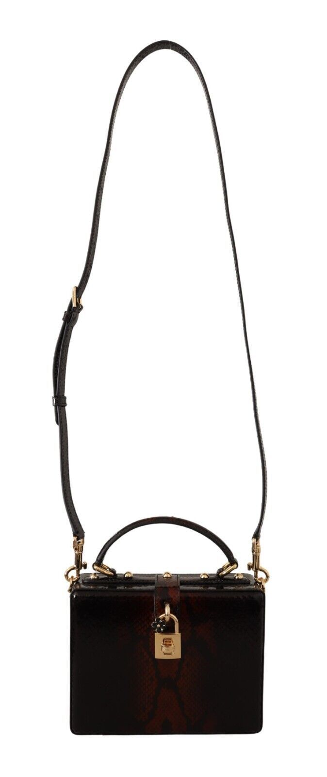Indulge in the epitome of Italian luxury with this Dolce & Gabbana women’s shoulder bag. Exquisitely crafted from a mix of premium leather and exotic python skin, this piece boasts a stunning bordeaux and black color palette, complemented by elegant gold metal detailing. The bag features a convenient adjustable and detachable shoulder strap, a secure twist padlock closure, and a plush black leather inner lining. This bag is not just an accessory; it’s a statement of style and a testament to exquisite craftsmanship.