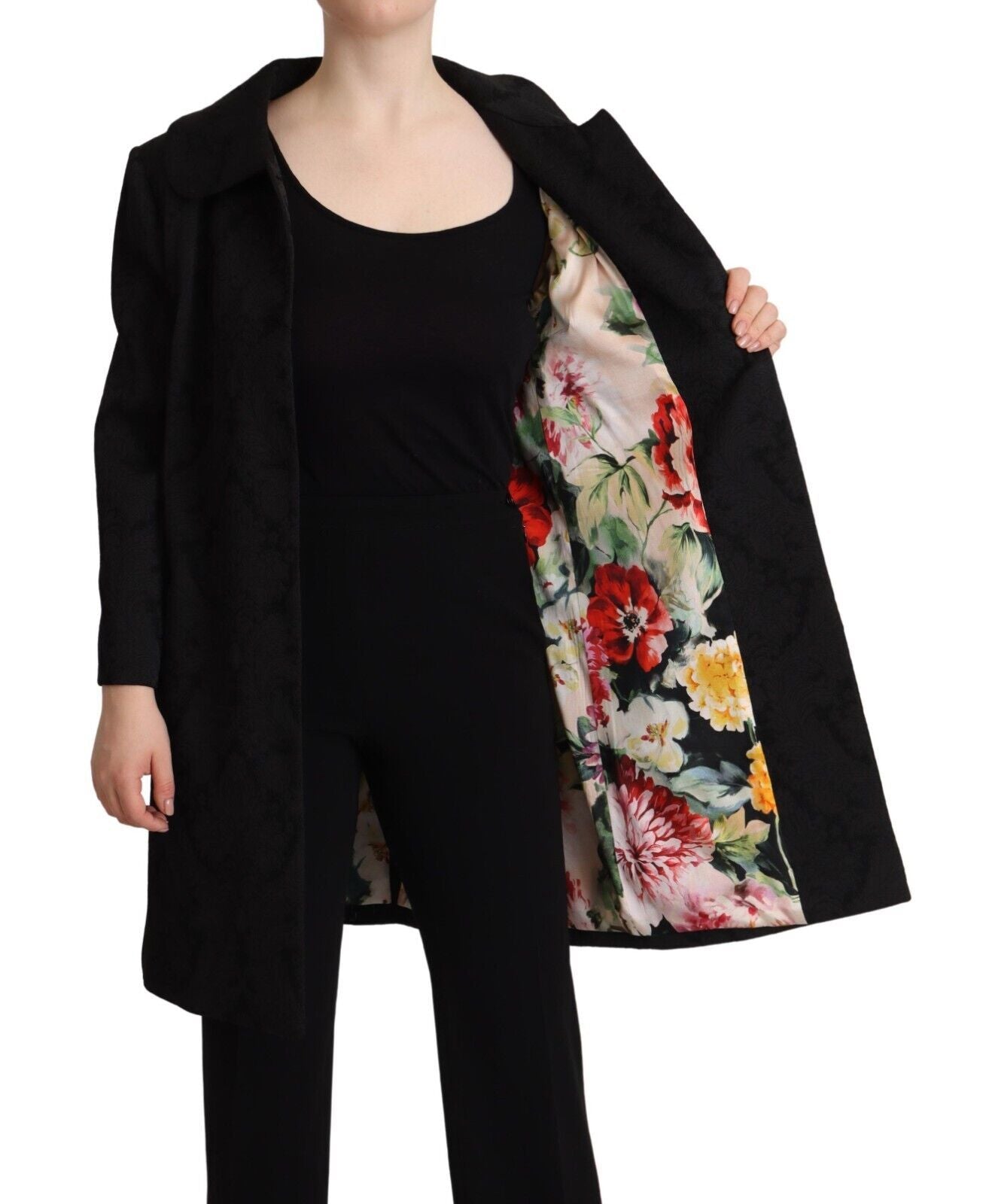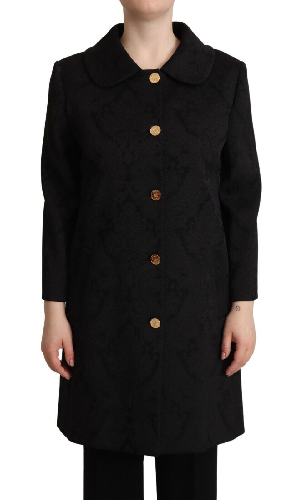 Gorgeous brand new with tags, 100% Authentic Dolce & Gabbana black brocade long coat with front button closure.