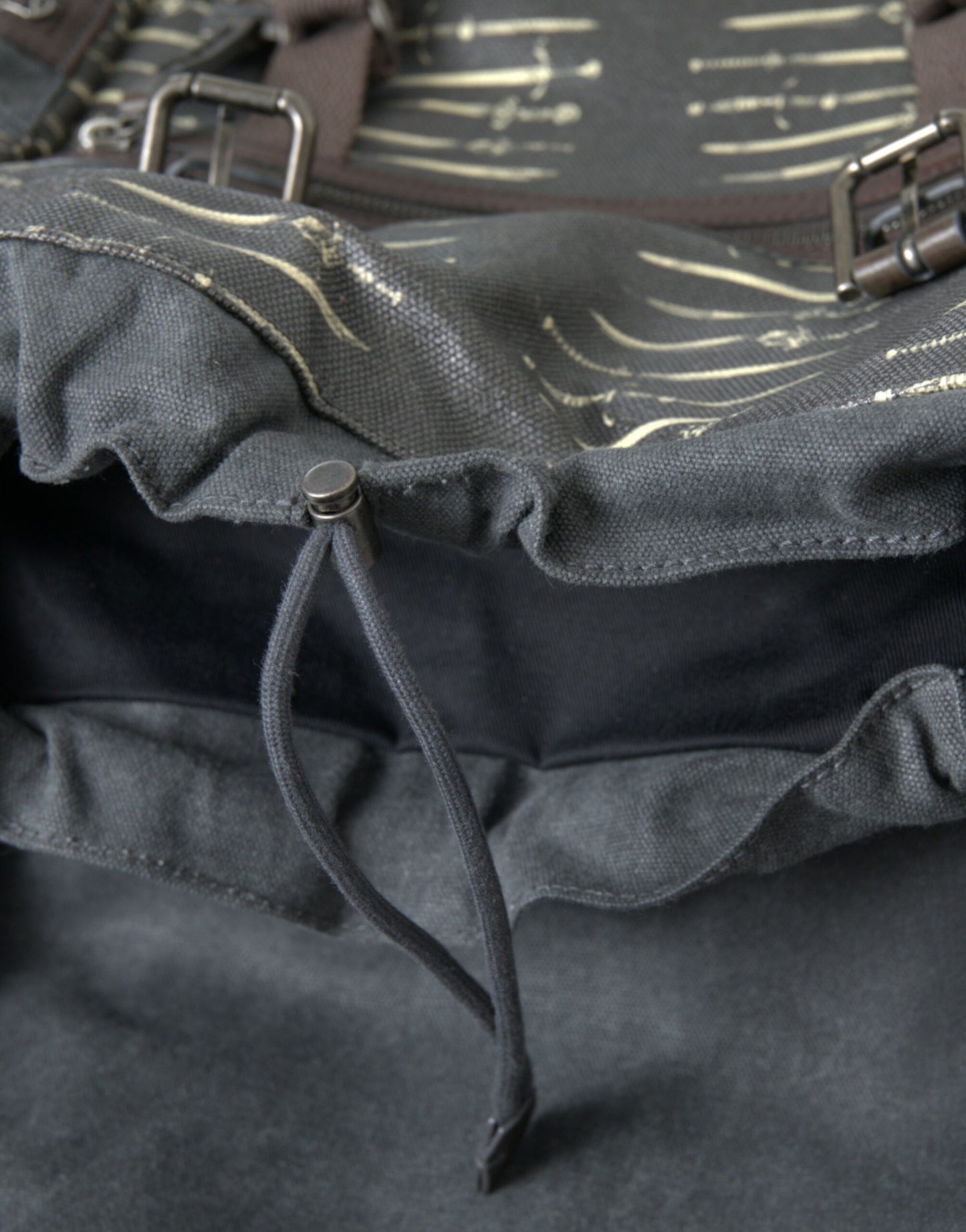 Black Brown Canvas Leather Rucksack Backpack Bag