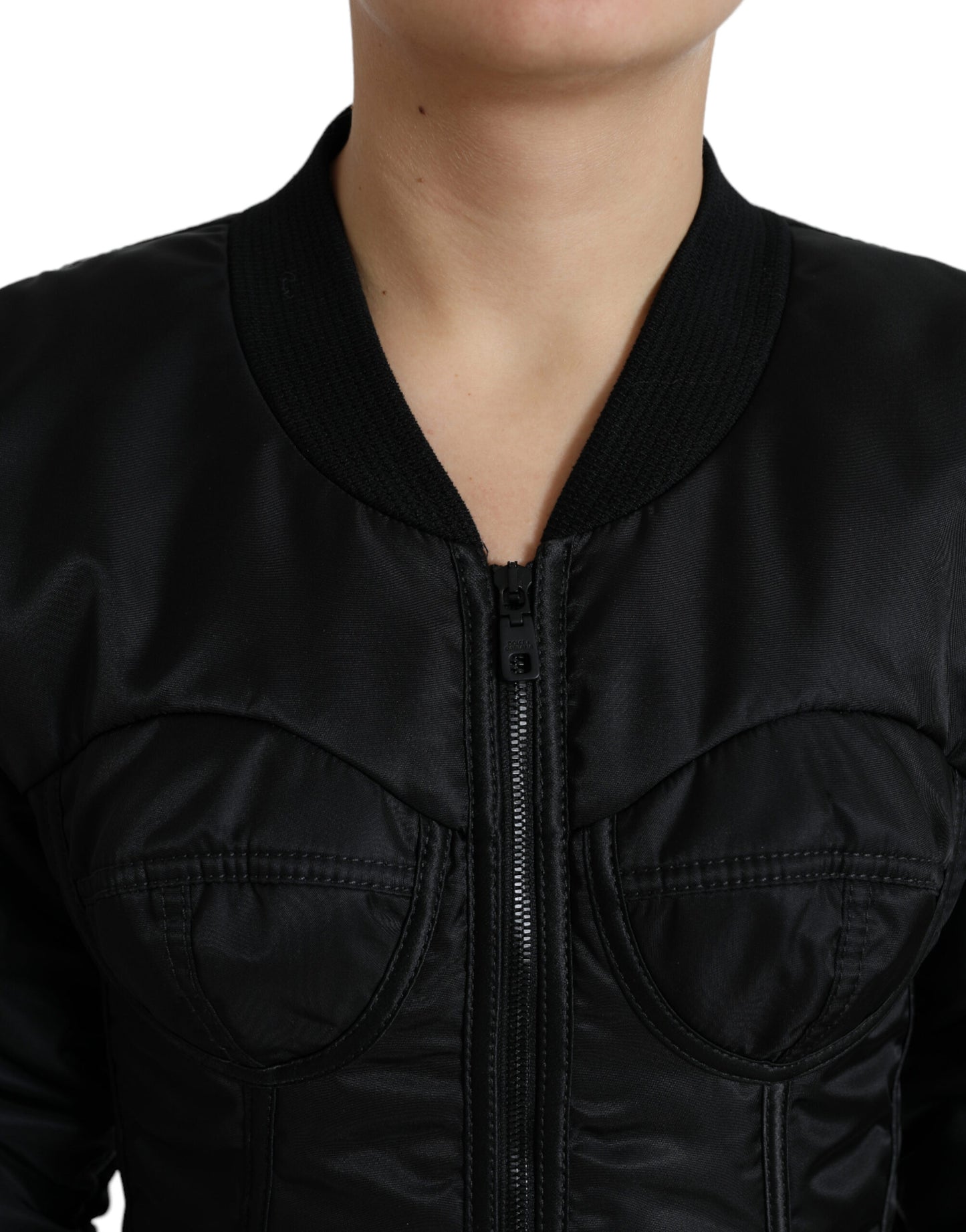 Step out in style with this sophisticated and versatile black blouson jacket from Dolce & Gabbana. Designed with meticulous Italian craftsmanship, this jacket features a sleek front zip fastening, long sleeves, and subtle logo details for a touch of luxury. It’s not just a statement piece; it’s a testament to exquisite tailoring and understated elegance. Perfect for elevating any outfit, the premium nylon material, coupled with a comfortable viscose lining, ensures both durability and comfort. Make this exclusive piece a staple in your wardrobe.
