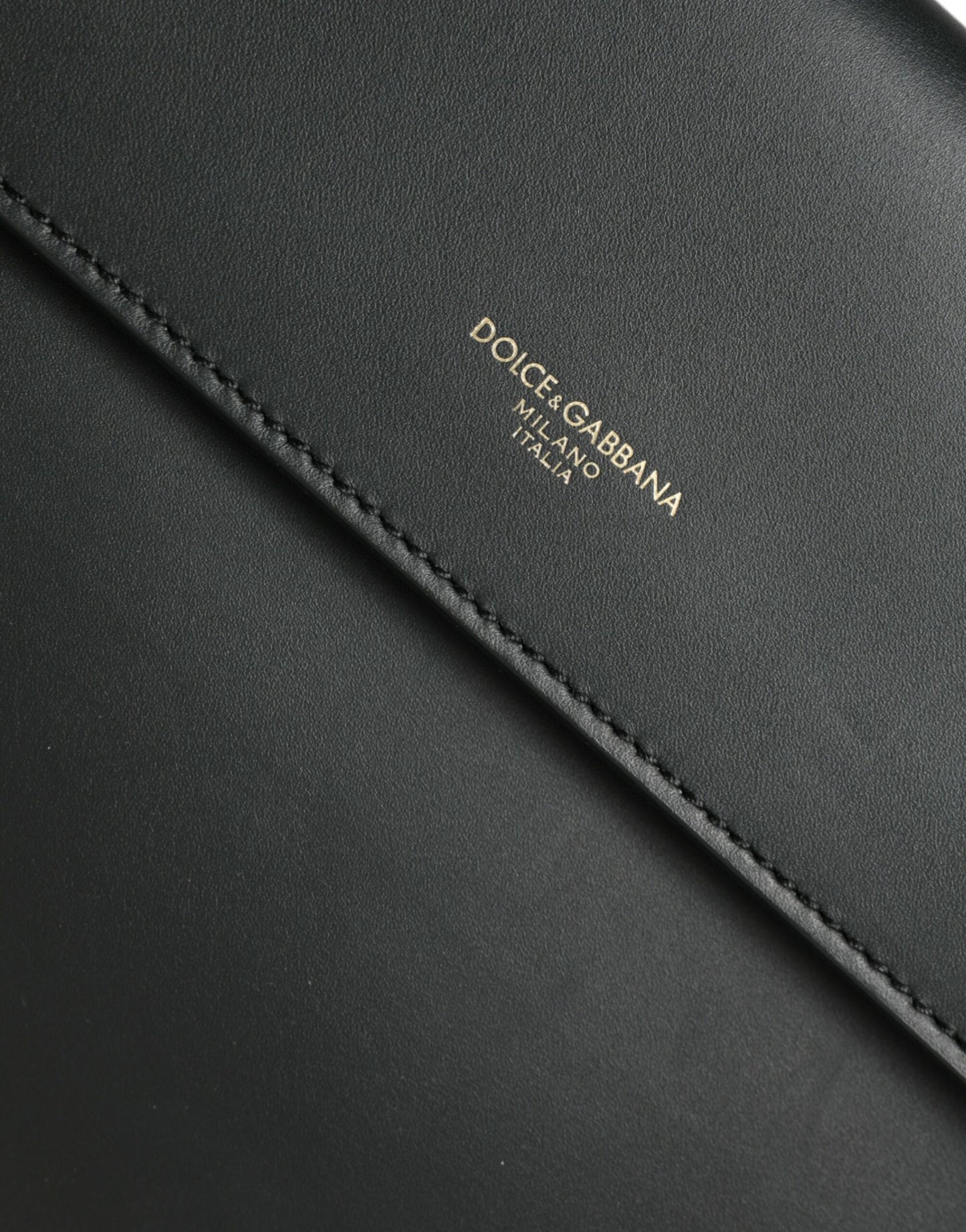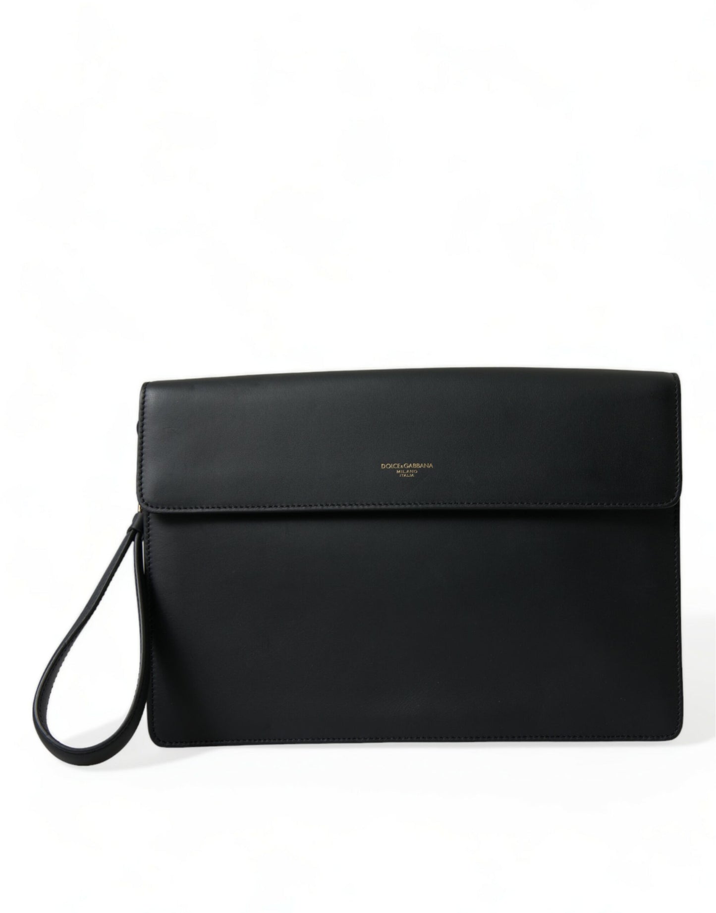Black Calf Leather Large Logo Document Holder Clutch Bag