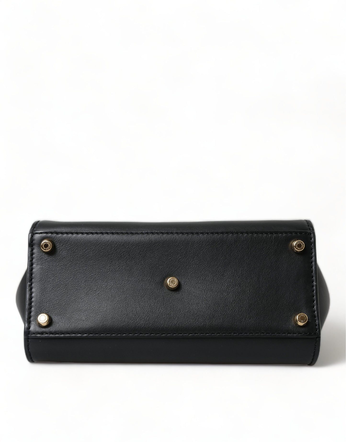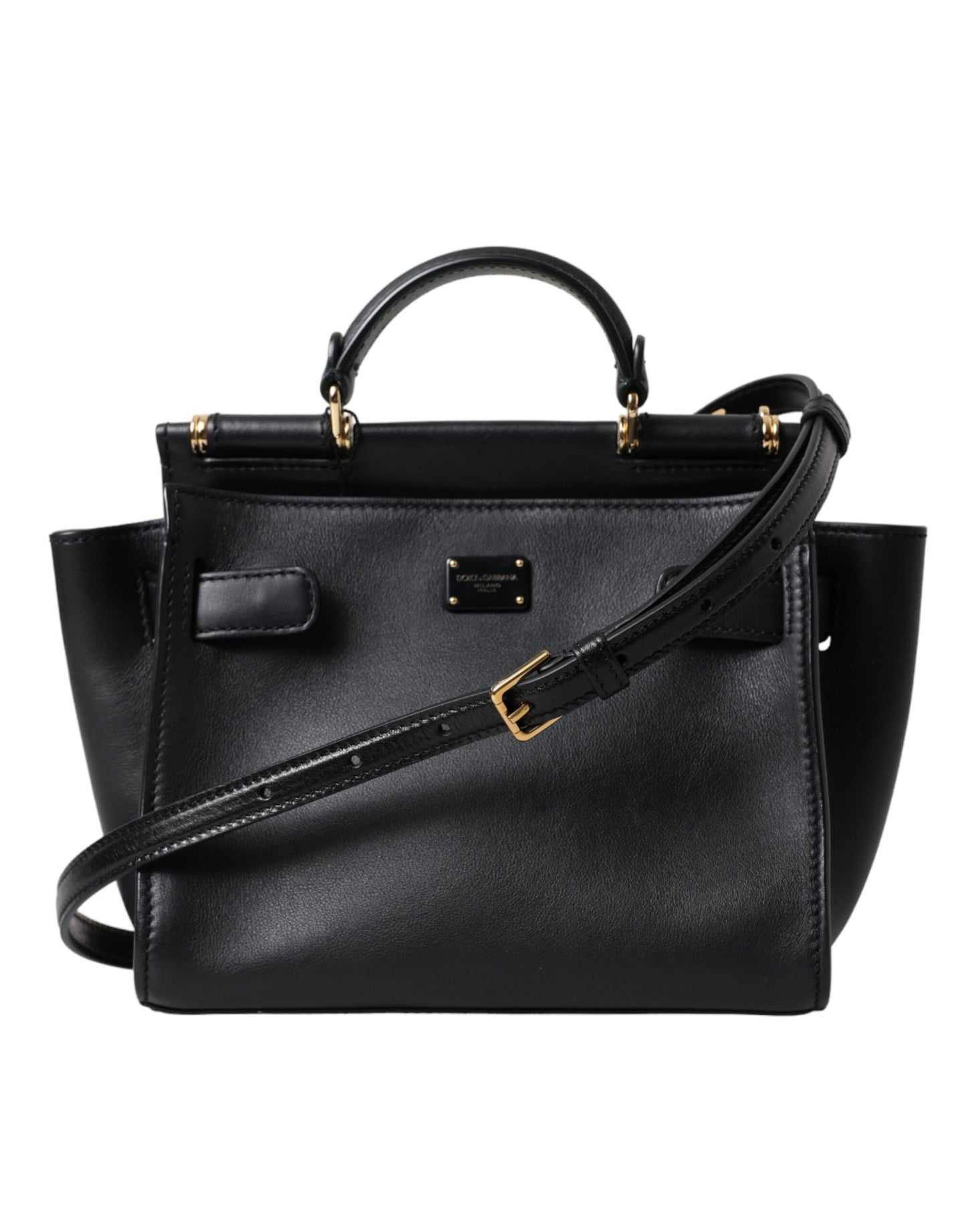 Discover sophistication with this stunning black leather shoulder bag from Dolce & Gabbana. Perfect for the fashion-forward individual, this bag features a luxurious logo appliqué, complemented by gold-tone metal hardware. The Sicily 62 model boasts exquisite craftsmanship, made with 100% calf leather, ensuring both durability and elegance. It’s equipped with a convenient half-round handle, alongside a detachable and adjustable shoulder strap for versatile styling. The bag’s interior is thoughtfully designed with one main compartment and an internal zip pocket lined in sleek black.