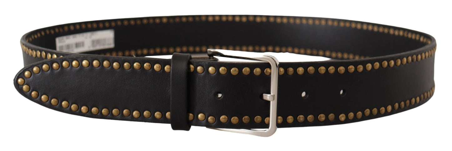 Elegant Black Leather Statement Belt