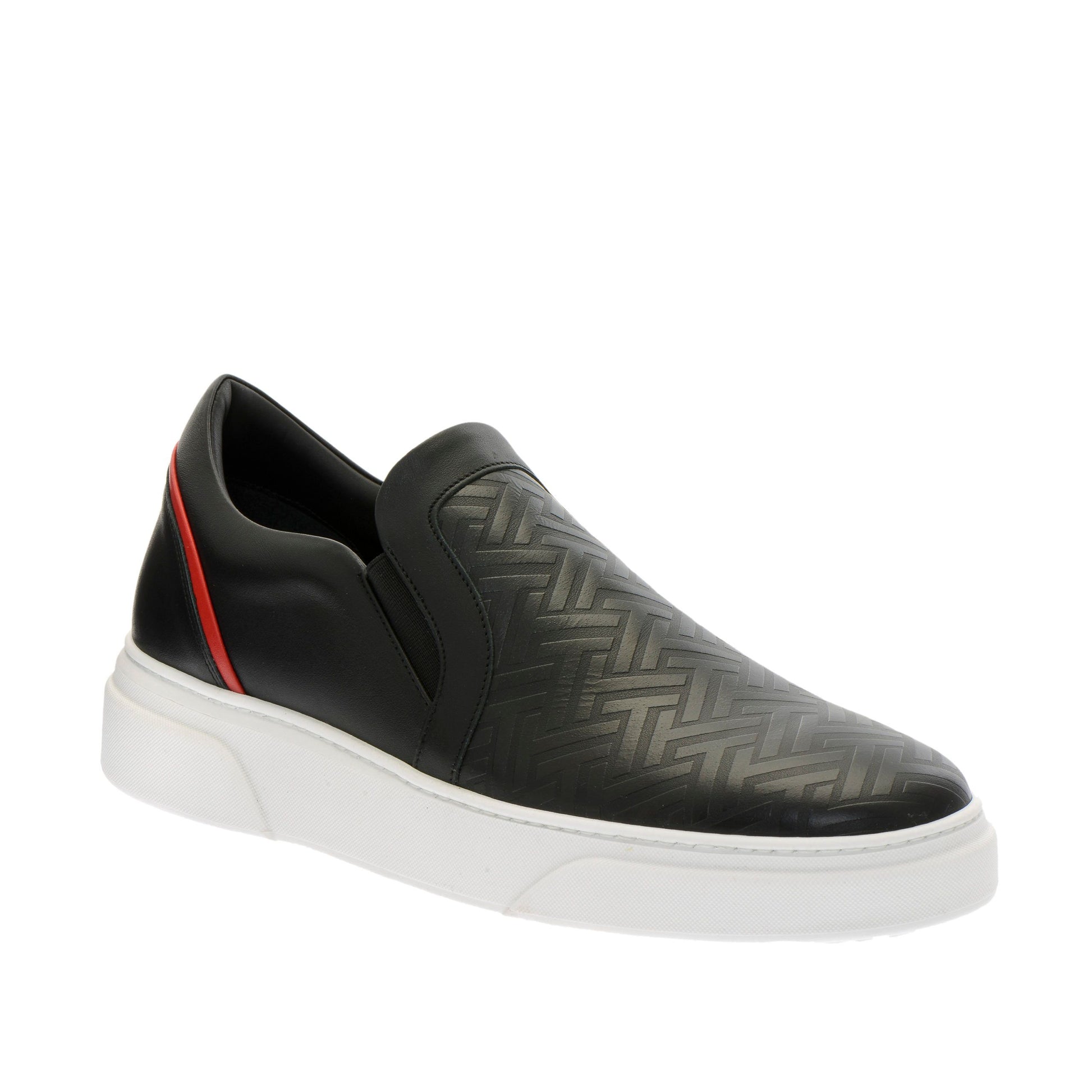 Dive into a blend of casual elegance and unbeatable comfort with these sleek black leather sneakers. A testament to superior craftsmanship, each pair promises a relaxed yet classy style, perfect for the discerning gent on-the-go. Crafted with care in Italy, these sneakers feature a durable white rubber sole designed to provide flexibility and support for all-day wear.