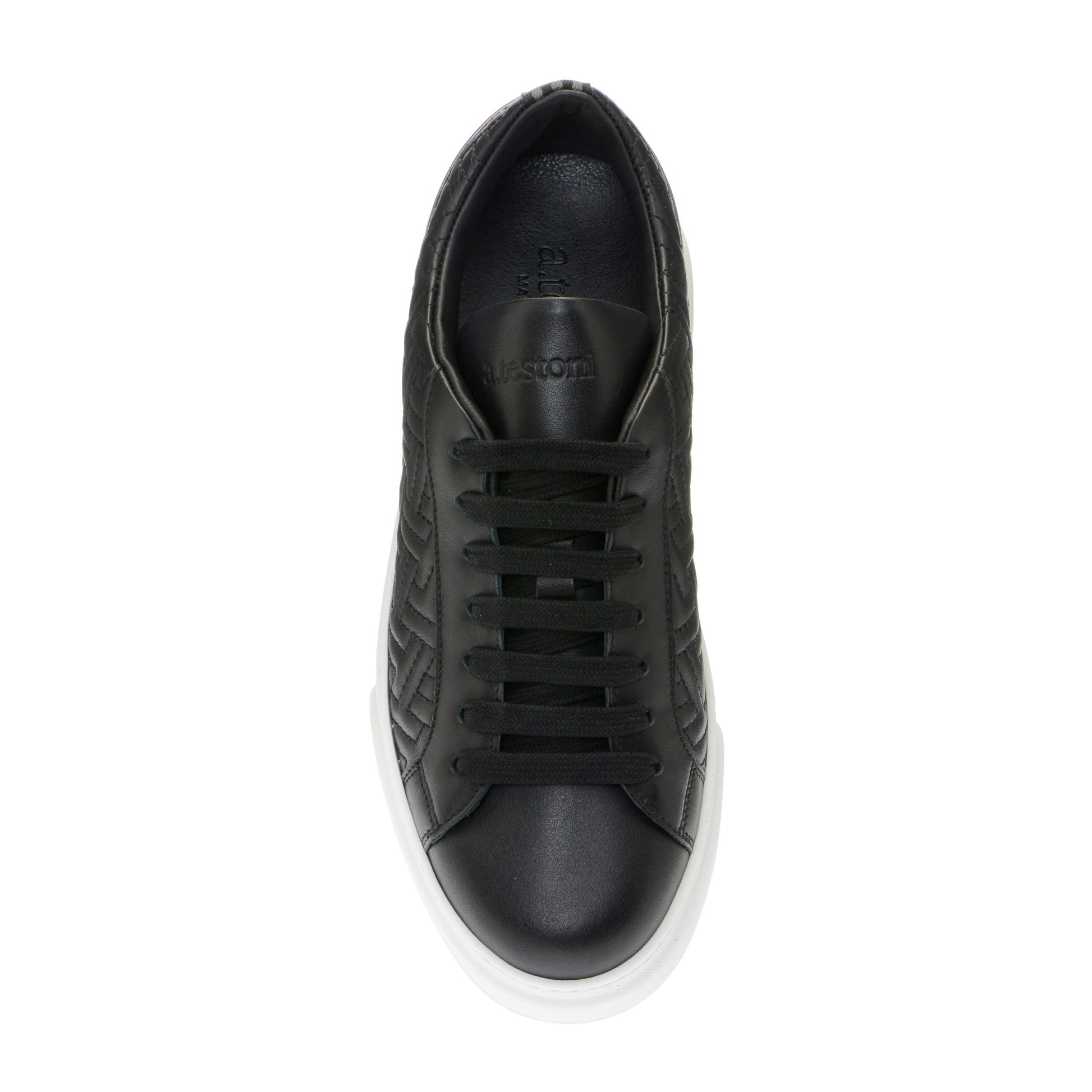 Step into a blend of casual elegance with these premium black leather sneakers. Designed for those who appreciate the finesse of high-fashion footwear, these sneakers offer a seamless transition from a laid-back daytime look to an upscale evening style. The iconic logo detail pays homage to the essence of luxury, while the white rubber sole provides unrivaled flexibility and comfort that caters to your on-the-go lifestyle.