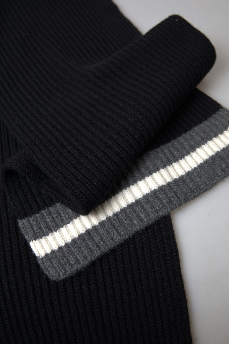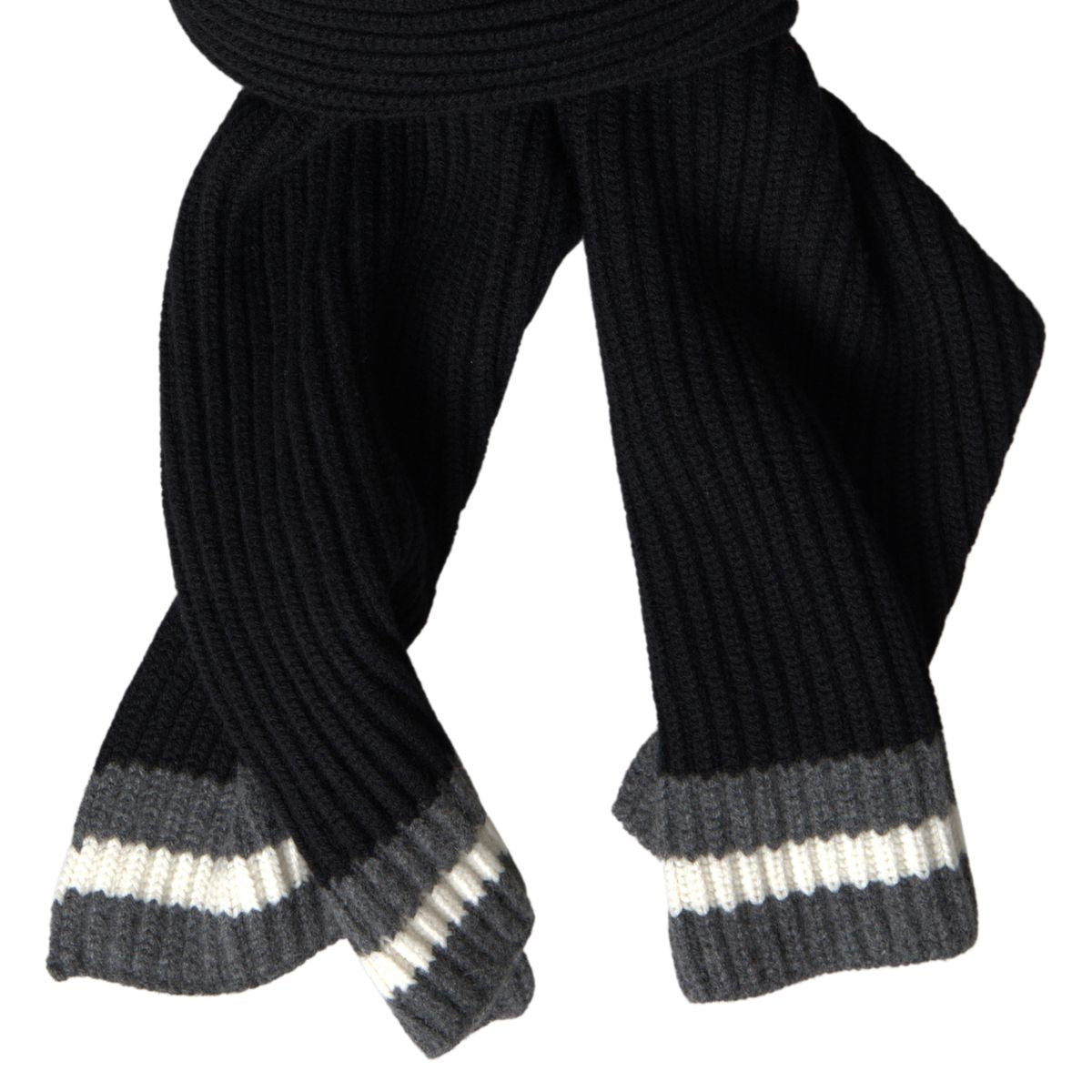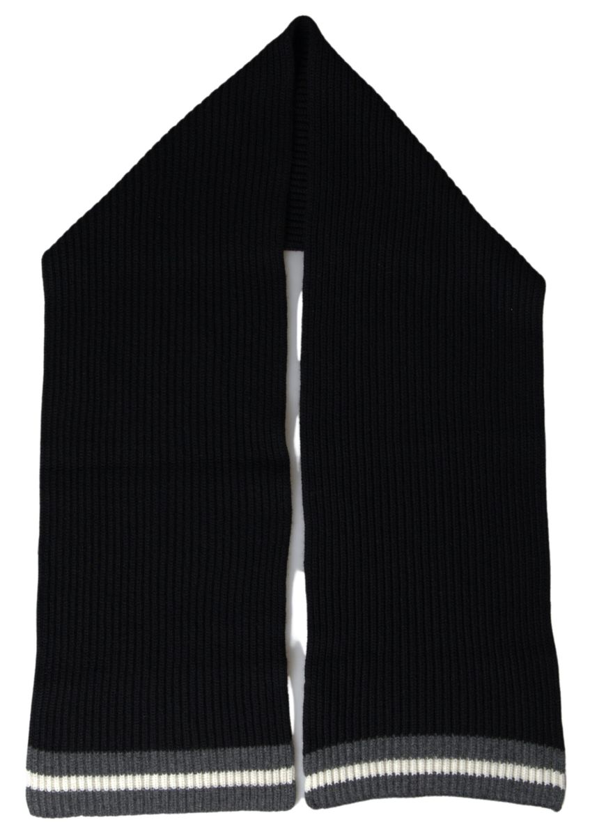 Indulge in the luxury of Italian craftsmanship with this gorgeous, brand new knitted neck wrap scarf. Perfect for adding a touch of elegance to any outfit, this 100% authentic cashmere piece from Dolce & Gabbana offers unparalleled softness and warmth. The sleek black color and subtle logo detail make it a versatile accessory for the discerning gentleman.