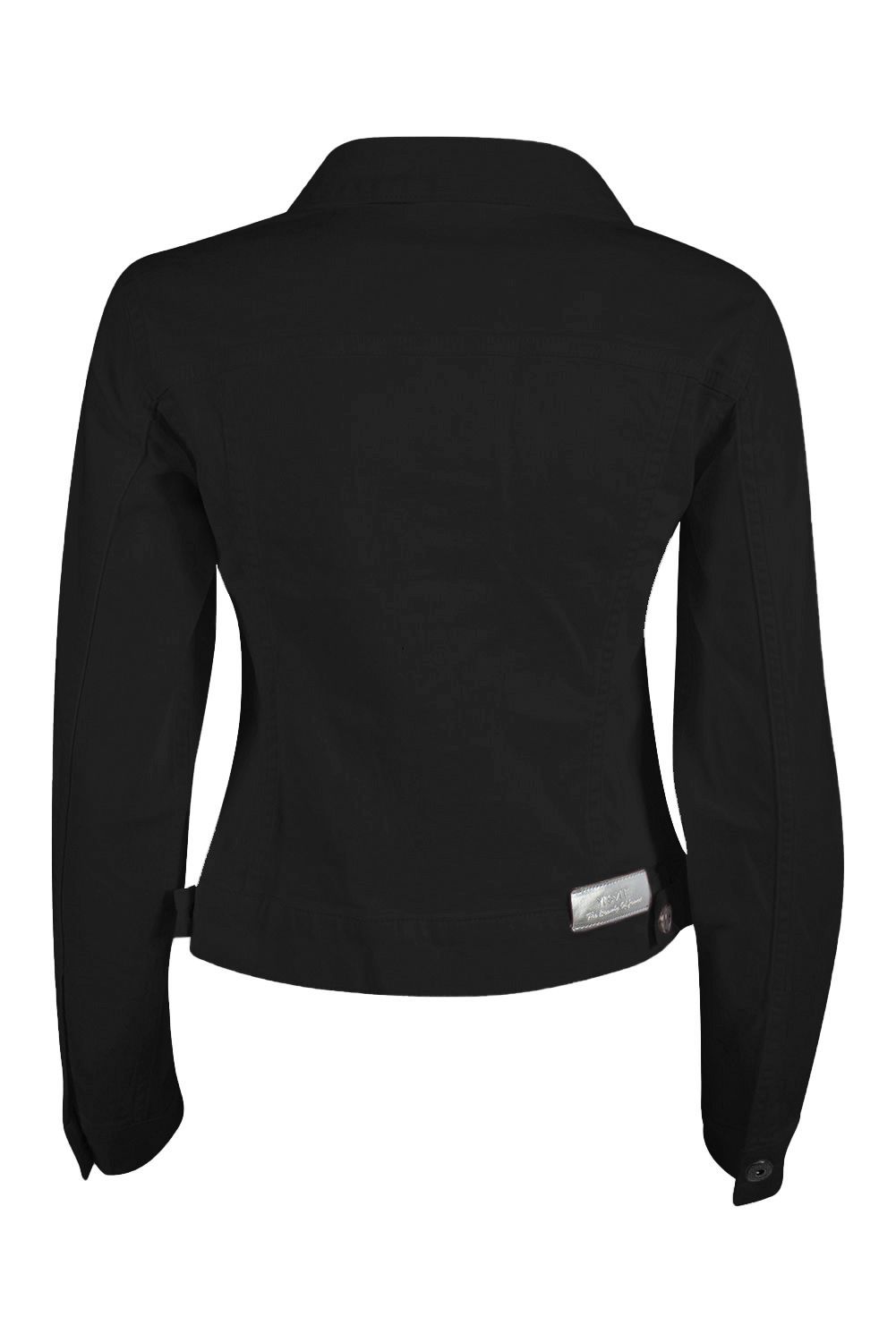 Elevate your outerwear collection with this chic black denim jacket, a timeless staple featuring a classic button closure and practical chest pockets. Its versatile design ensures it can be dressed up for an evening out or dressed down for a casual day look.