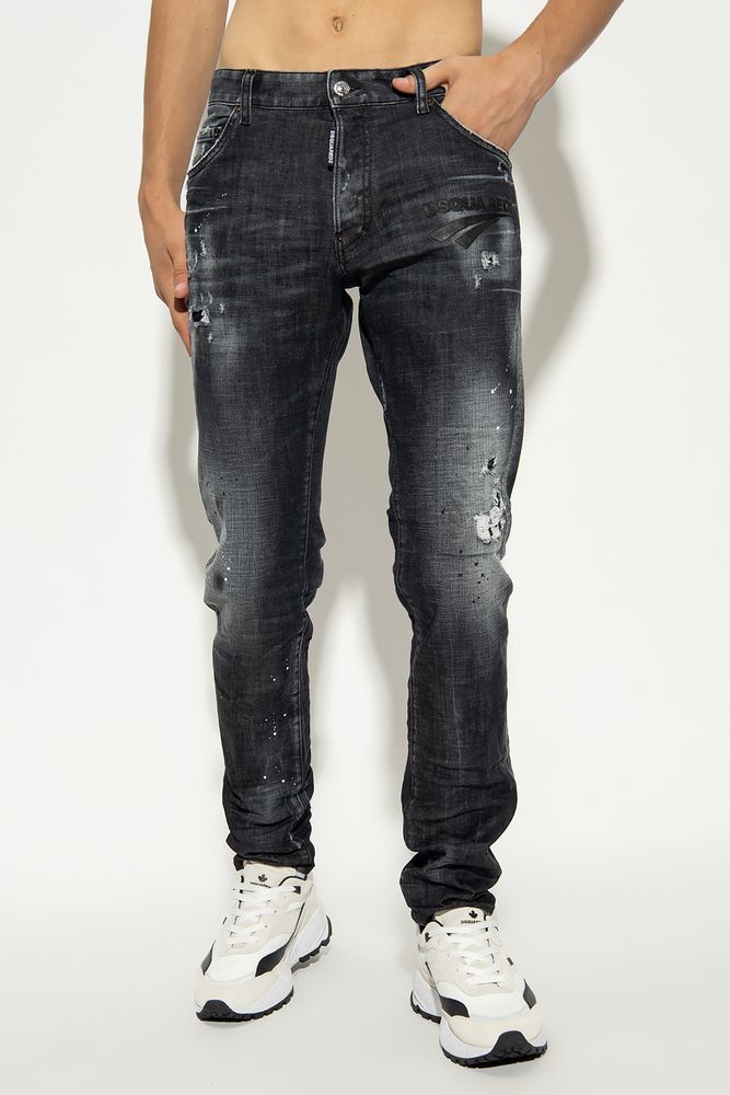 Infuse a touch of elegance into your wardrobe with these sleek slim fit black denim jeans. Constructed from lightly stretchy cotton denim, they offer both comfort and durability. A subtle leather patch adds an air of sophistication to this essential piece, making it perfect for both casual and elevated looks.