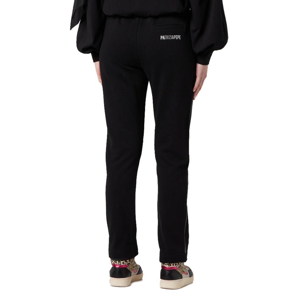 Experience the perfect blend of comfort and elegance with Patrizia Pepe’s cotton sweatpants. Crafted in Italy, they feature a convenient elasticated waist with drawstring, practical side and back pockets, and a striking rhinestone decoration adorning the leg sides. These sweatpants are your go-to for both relaxed days in or stepping out in laid-back luxury.