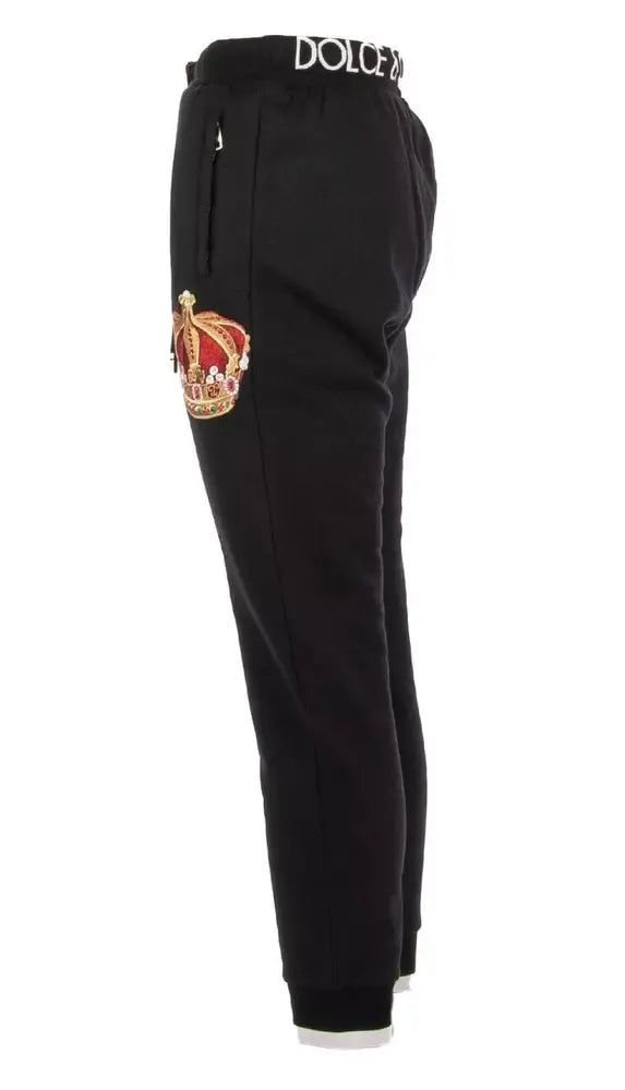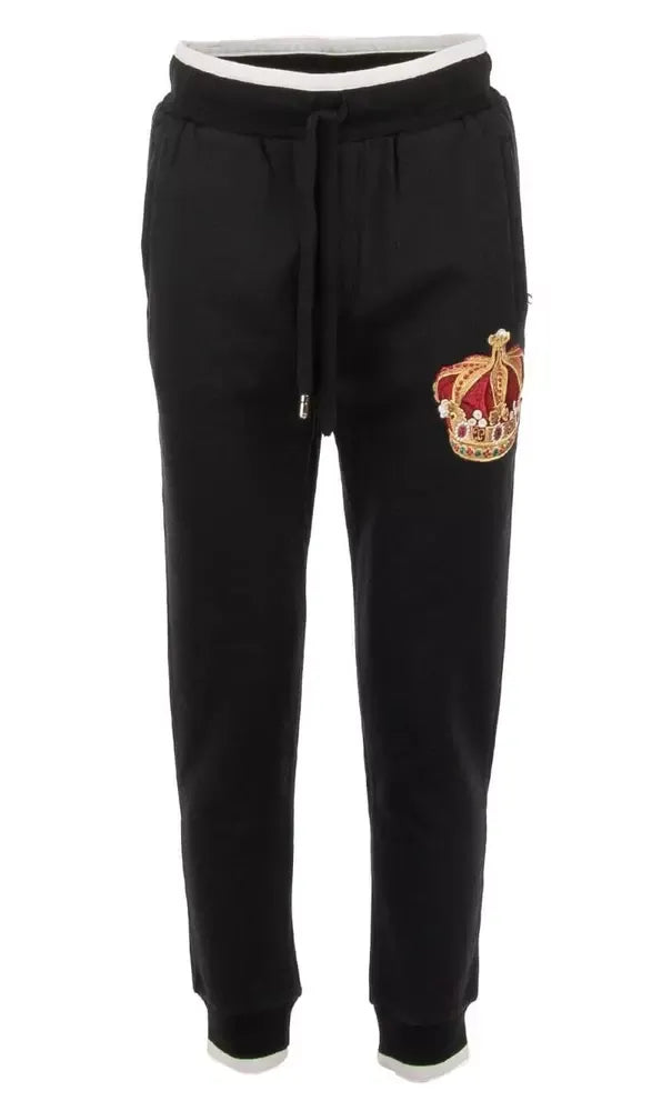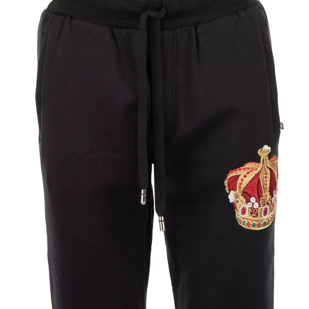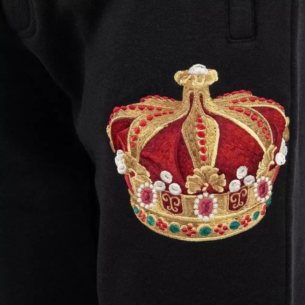 Embroidered Crown Sport Pants - Elegant Black