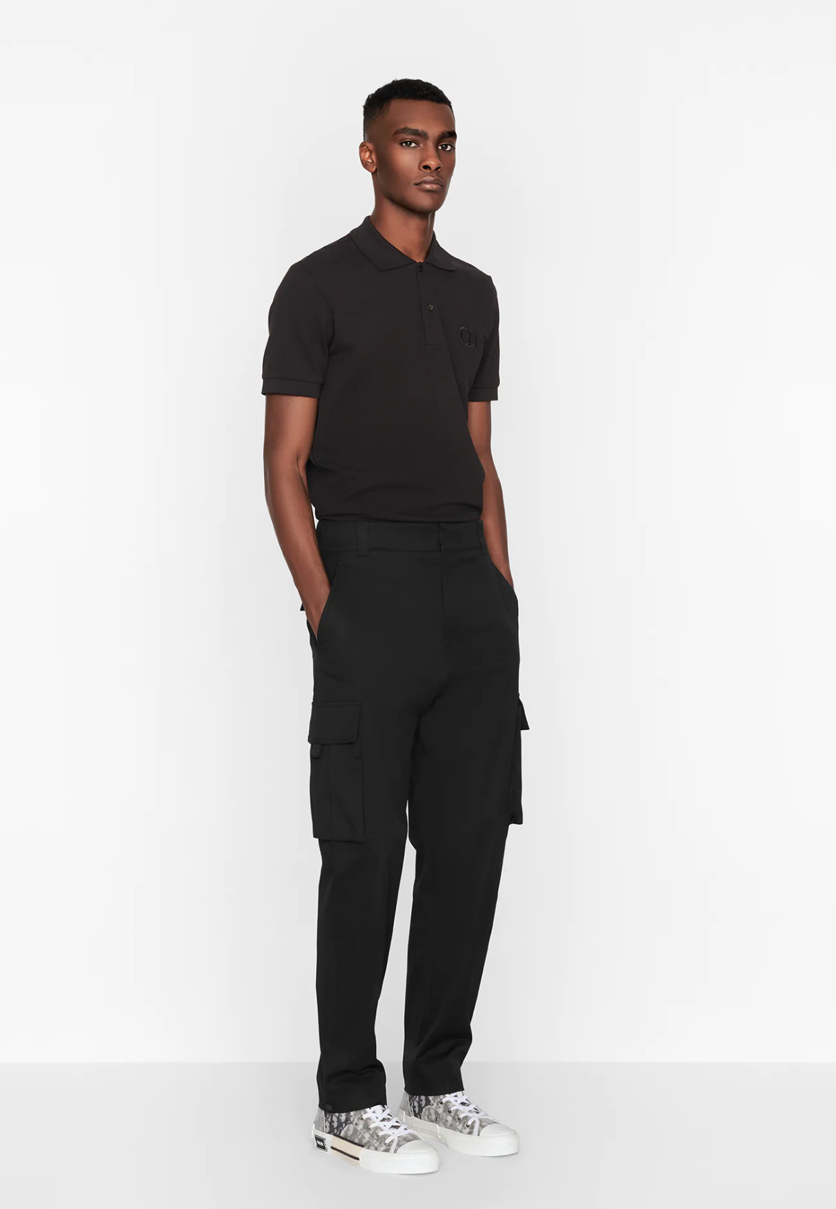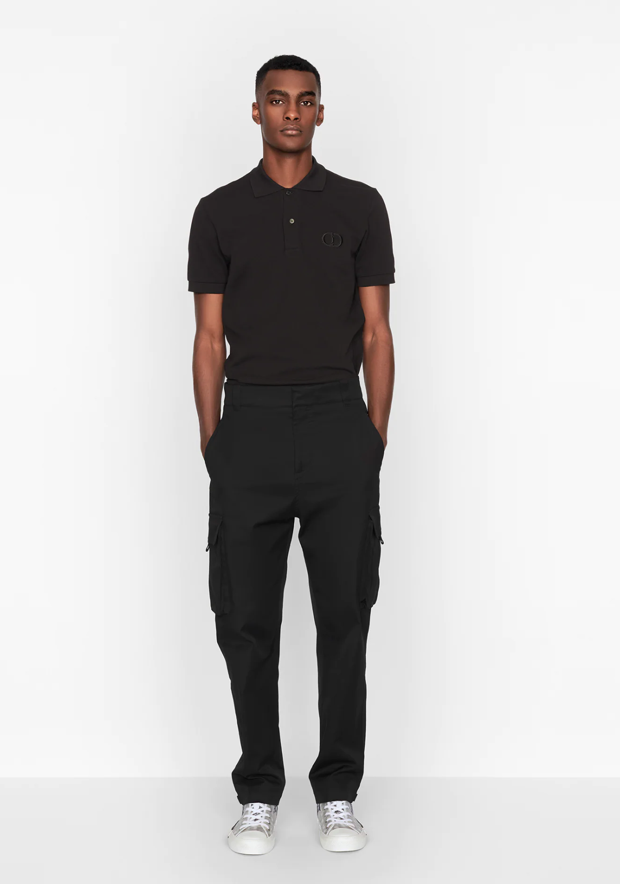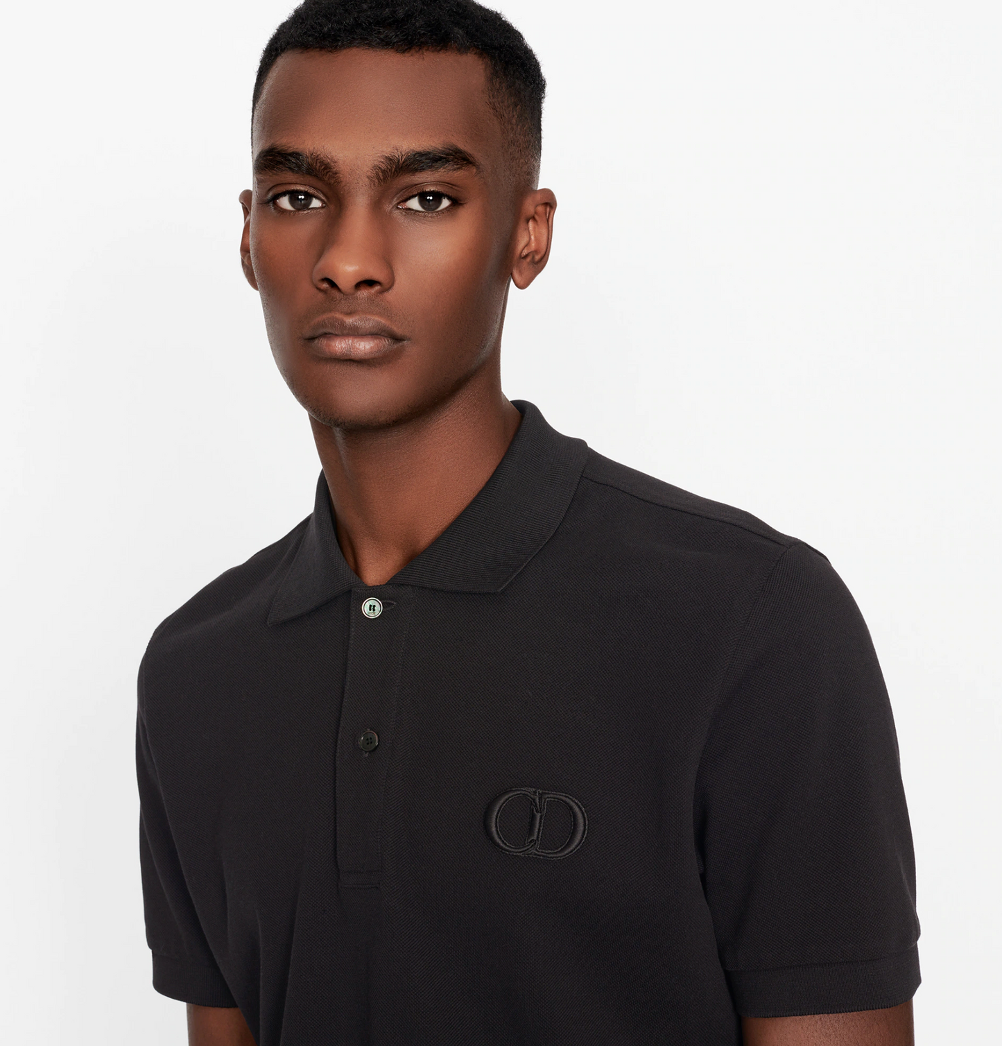 Immerse in the blend of comfort and elegance with our timeless Black Cotton Pique Polo Shirt. Elegantly designed with a tone-on-tone CD Icon embroidery on the chest, this classic polo shirt is a testament to refined casual style. Its premium fabric ensures a soft feel while the Dior signature mother-of-pearl buttons add a touch of luxury. Perfectly paired with jeans for an effortlessly chic look, this polo promises a regular fit and the distinguished quality of Italian craftsmanship.