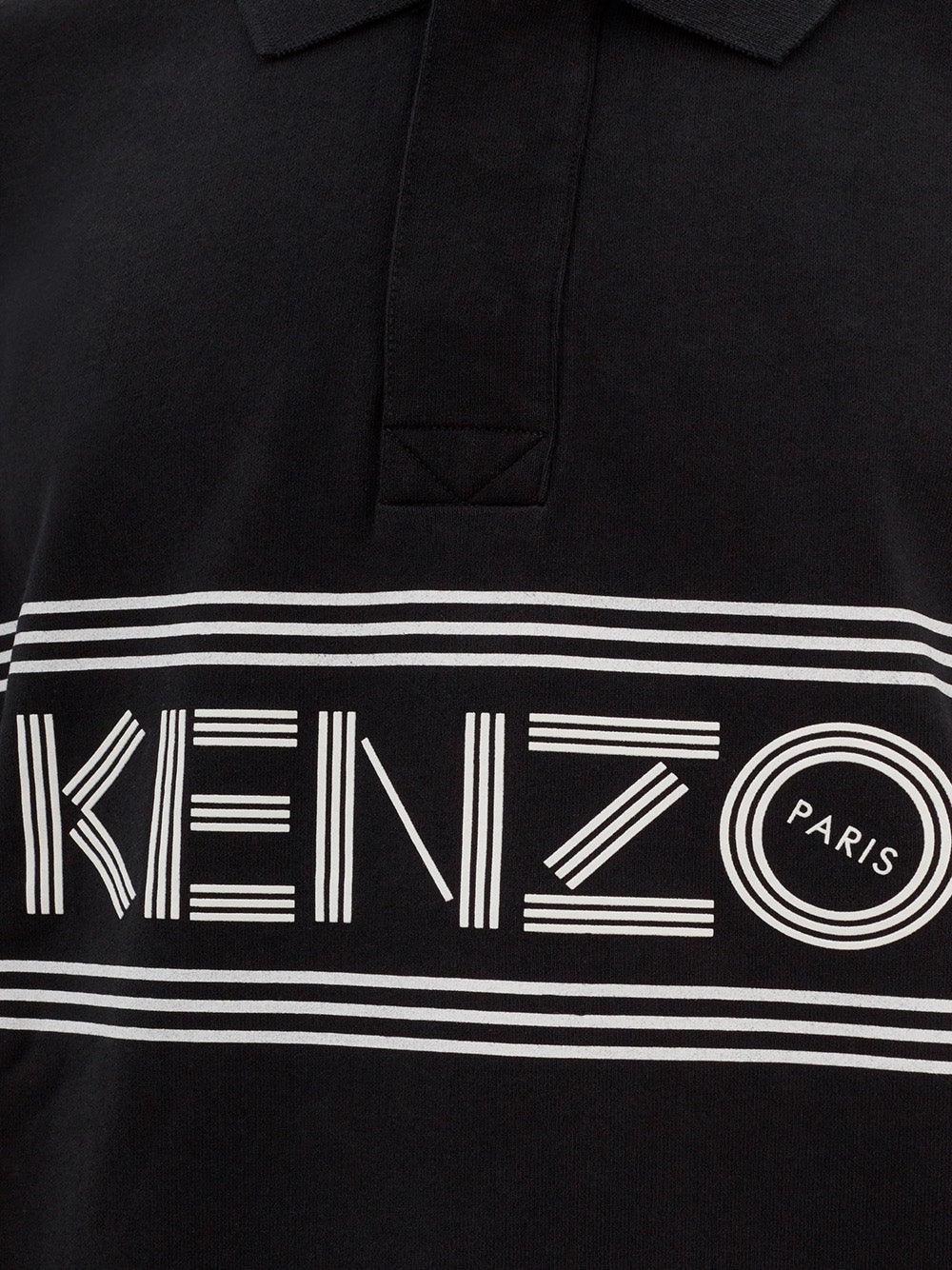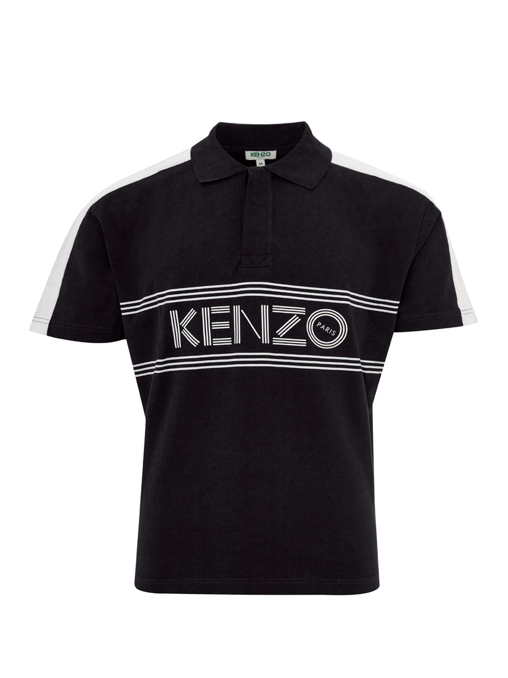 Exude effortless style in this stunning black polo shirt from Kenzo. Perfect for any occasion, it features a sharp shirt collar and a sleek front button closure. The contrasting white logo on the front and shoulder details add a touch of the brand’s iconic flair. Crafted from premium cotton and made in Portugal, this polo promises a comfortable fit that stays true to size.