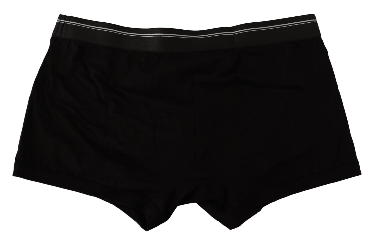 Experience the epitome of luxury with these Dolce & Gabbana boxer briefs. Crafted from a blend of high-quality cotton and elastane, these boxer briefs are designed to provide an exceptional fit and utmost comfort. The striking black hue is elegantly contrasted with a white elastic striped waistband adorned with the iconic Dolce & Gabbana logo, making it an exclusive addition to your underwear collection. Made in Italy, these briefs ensure a perfect blend of style and functionality for everyday wear.