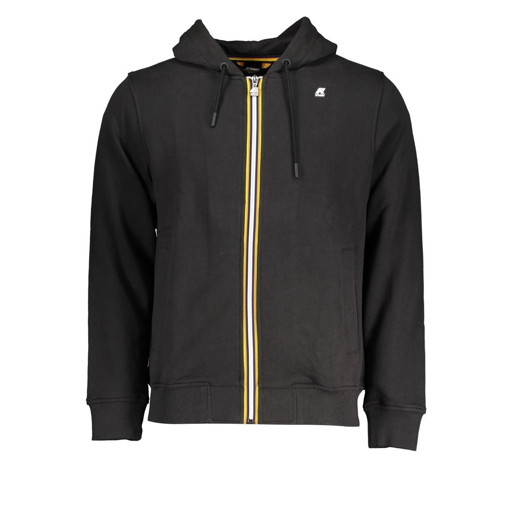Step into comfort and style with our K-WAY long-sleeved hooded sweatshirt, crafted from 100% brushed cotton for a luxurious feel. This black sweater features a classic zip-up design embellished with eye-catching contrast details. The practicality comes with two cozy pockets and the K-WAY logo application adds that exclusive touch of sophistication to your casual wardrobe.