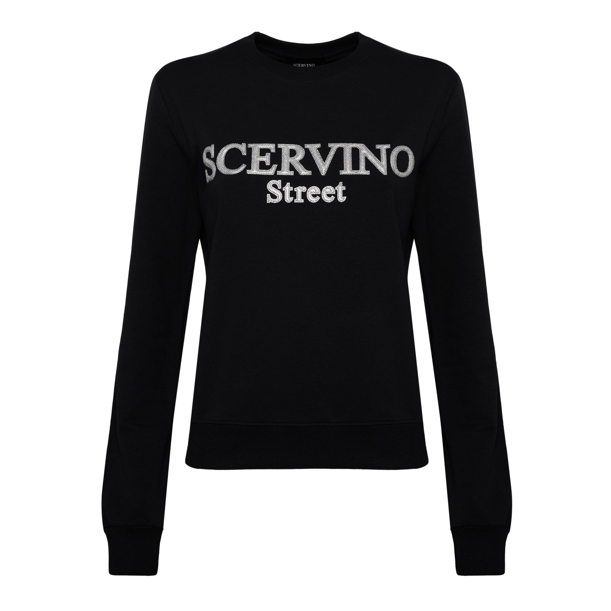 Exude elegance and comfort with this glittered logo sweatshirt. Crafted from a soft blend of cotton with a hint of elastane for that perfect stretch, this black sweatshirt features a dazzling embossed logo that’s sure to turn heads. Made with Italian finesse, it’s a statement piece for any casual collection.