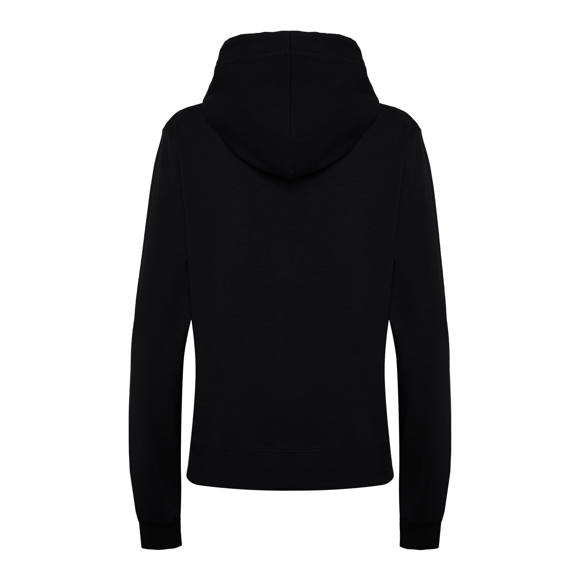 Indulge in Italian craftsmanship with this sophisticated black hooded sweatshirt. Designed for both comfort and style, it features a striking embossed logo and convenient front pockets, crafted from a premium cotton blend with a touch of stretch for the perfect fit. A versatile addition to your everyday wardrobe tailored for the modern woman.
