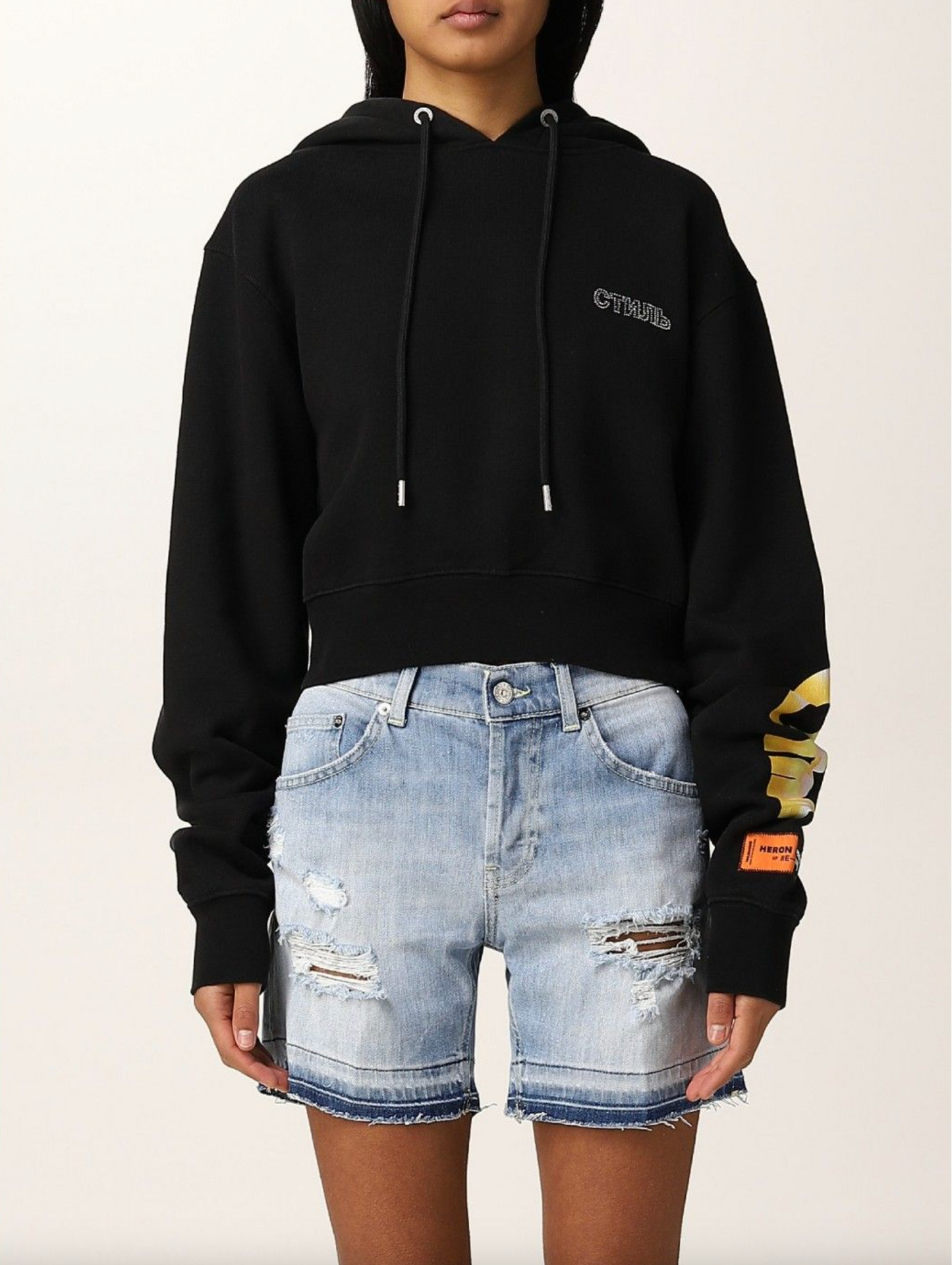 Elevate your casual wardrobe with this stunning black cotton hoodie, meticulously adorned with sparkling strass details that catch the eye and exude modern luxury. Crafted with care in Portugal, this hoodie promises both comfort and style.