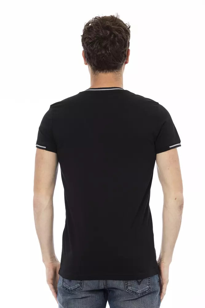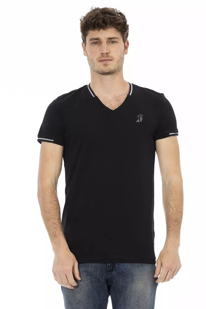 Elevate your casual wear with this sleek V-neck T-shirt by Trussardi Action, featuring a stylish chest print for added flair. Perfect for any occasion that calls for a touch of sophistication in your off-duty attire.