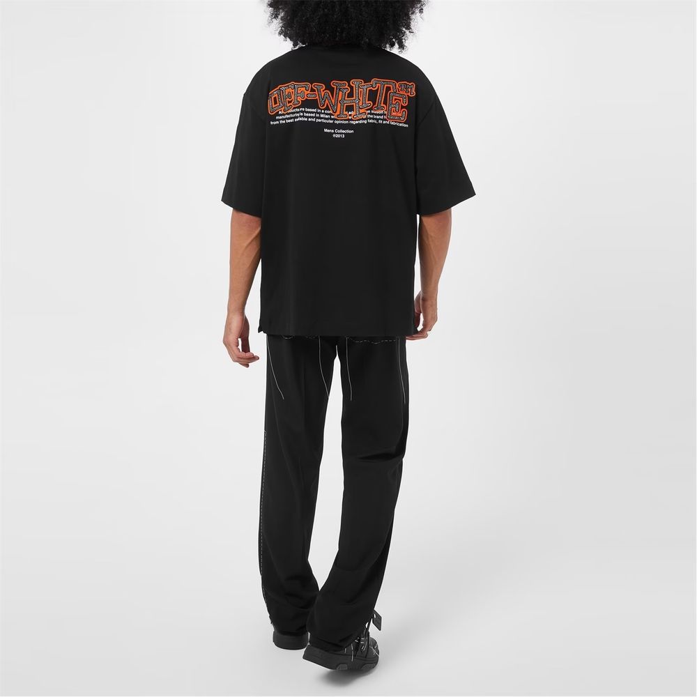 Discover the epitome of urban chic with the Off-White 100% Cotton T-shirt, featuring a sparkling frontal brand print adorned with rhinestones. The back boasts a statement brand print also embellished with rhinestones, crafting a look that’s both luxurious and edgy. Crafted with excellence in Italy, this tee is a blend of high fashion aesthetics and streetwear vibe.