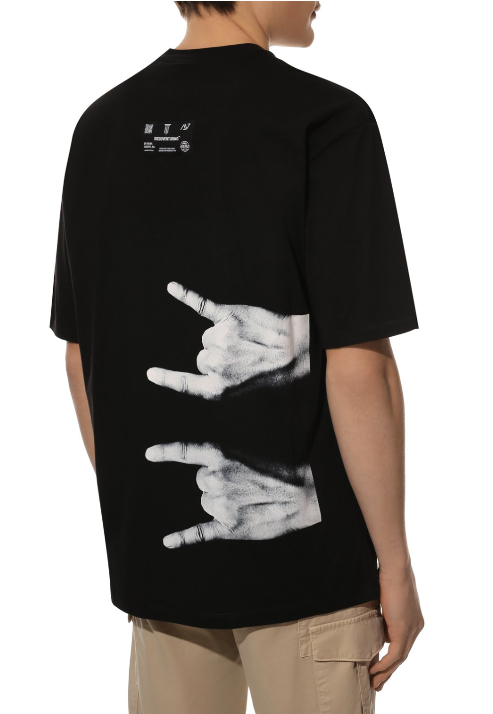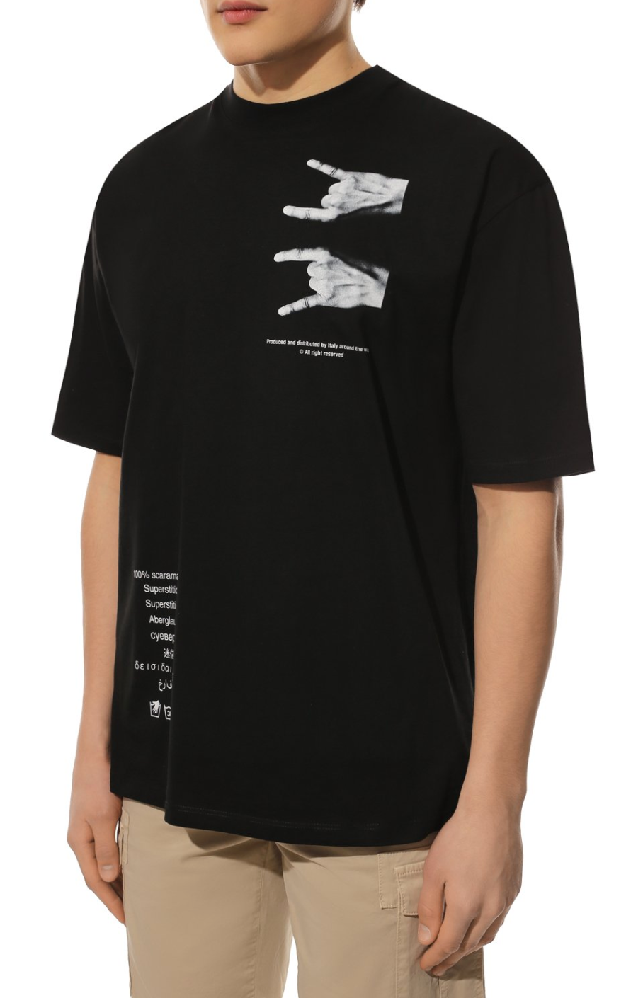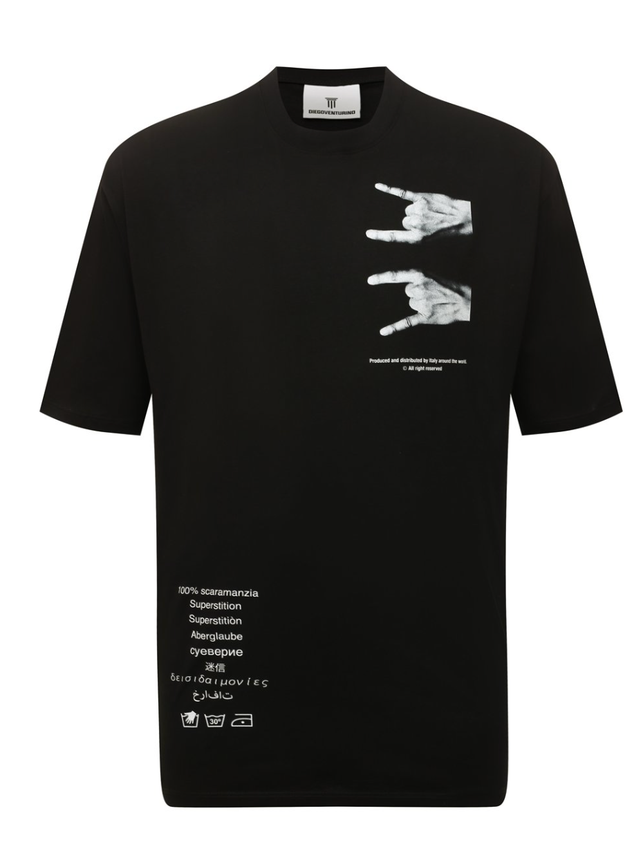 Experience the height of Italian craftsmanship with this elegant black t-shirt, featuring a distinctive brand design on both sides. Crafted from 100% high-quality cotton, this tee offers both comfort and style. Perfect for adding a touch of sophistication to any casual ensemble.