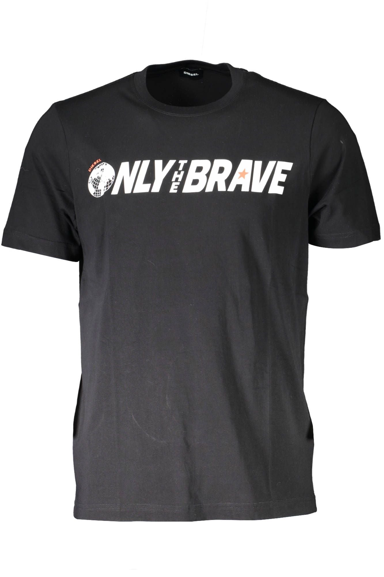 Step up your style quotient with this sleek black t-shirt from the trendsetting fashion house, Diesel. Boasting a contemporary design with short sleeves and a flattering round neck, this tee is accentuated with a striking logo application that makes a statement without trying too hard. Crafted from soft, breathable cotton, it ensures comfort for all-day wear while exuding a cool, casual vibe.