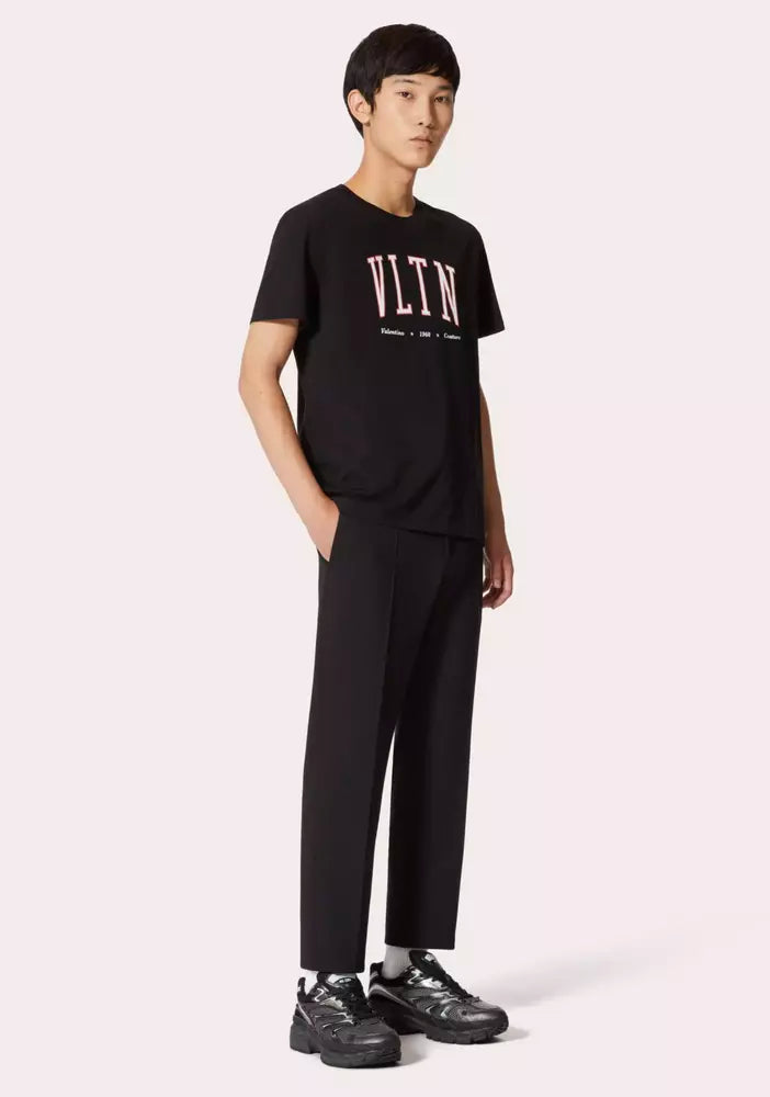 Elegant VLTN Crewneck Cotton T-Shirt in Black