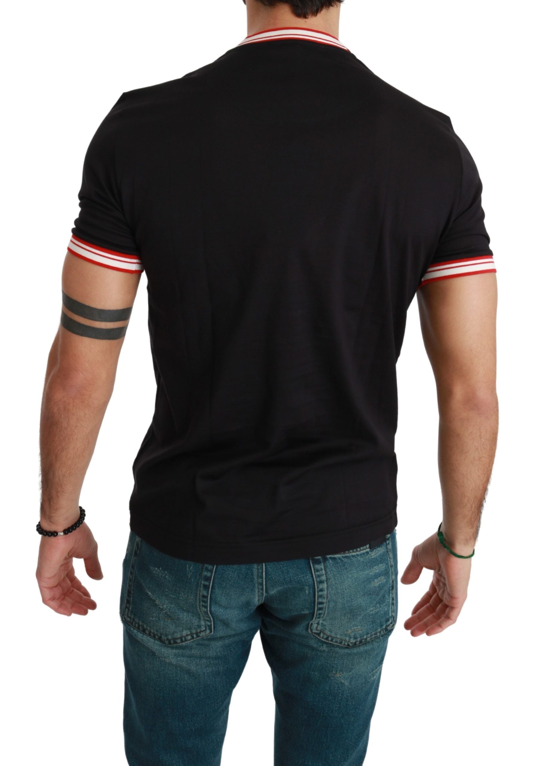 Indulge in the epitome of Italian craftsmanship with this striking Dolce & Gabbana T-shirt. Crafted from premium 100% cotton, this tee is not just a basic black shirt but a canvas featuring the whimsical 2019 Year of the Pig, Mister Pig motive. A perfect blend of comfort and style with its round neck and regular fit that ensures you stand out with an air of sophistication. Logo details subtly adorn the T-shirt, rounding out its exclusive look. Designed and made in Italy, it promises to be a favorite in your wardrobe collection.