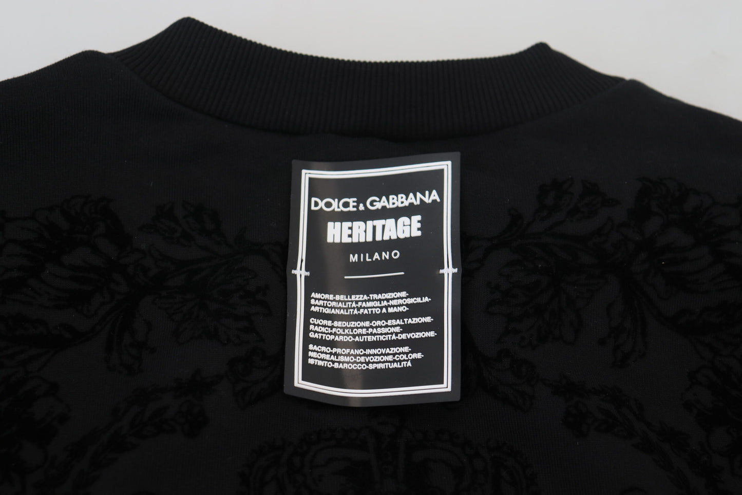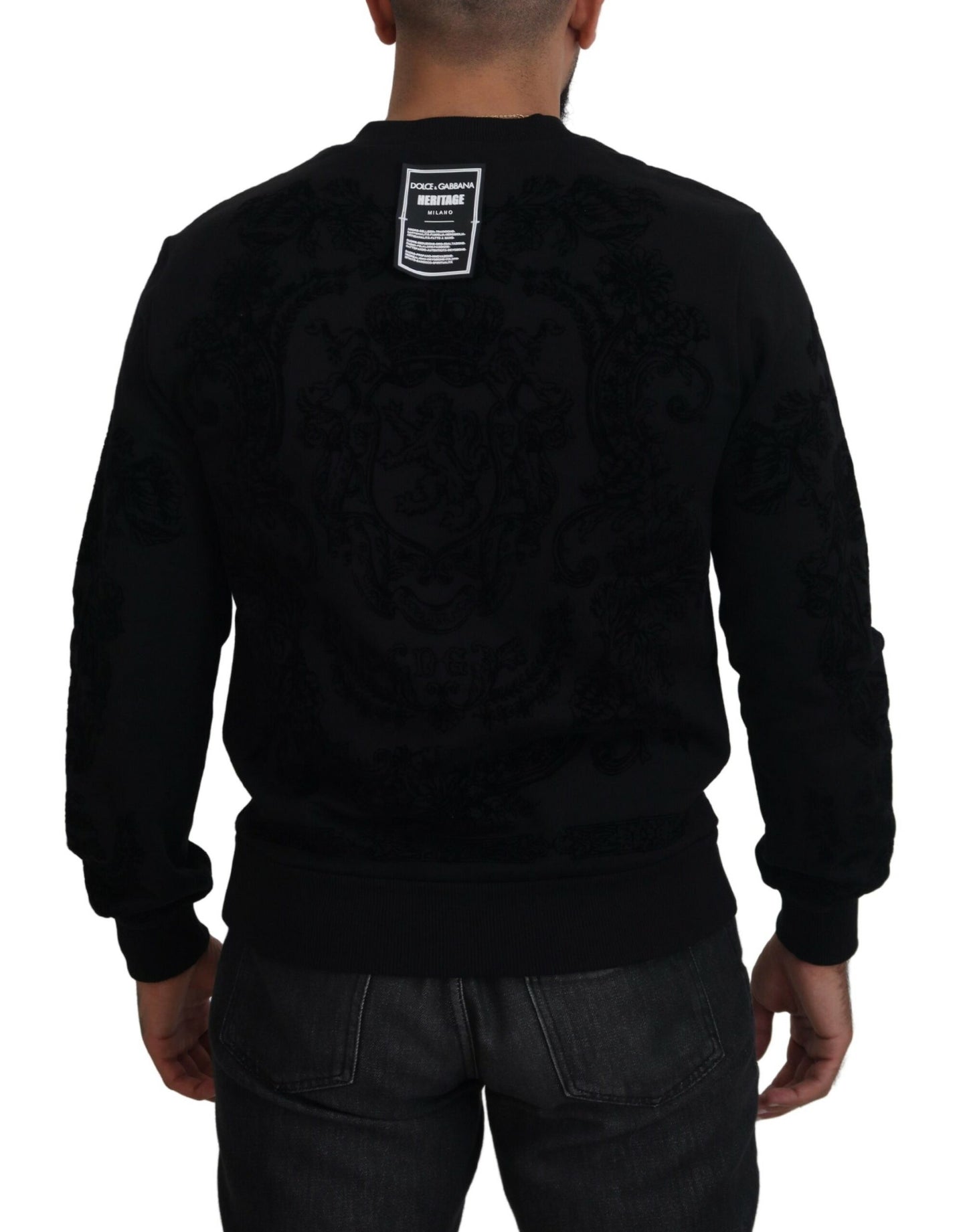 Wrap yourself in the epitome of comfort and style with this Dolce & Gabbana Heritage Sweater. Crafted in Italy, its classic black hue is versatile for any wardrobe, while the brand’s iconic logo adds a touch of luxury to this crewneck piece. Designed for the discerning gentleman, it boasts a comfortable blend tailored to provide both warmth and a sleek silhouette.