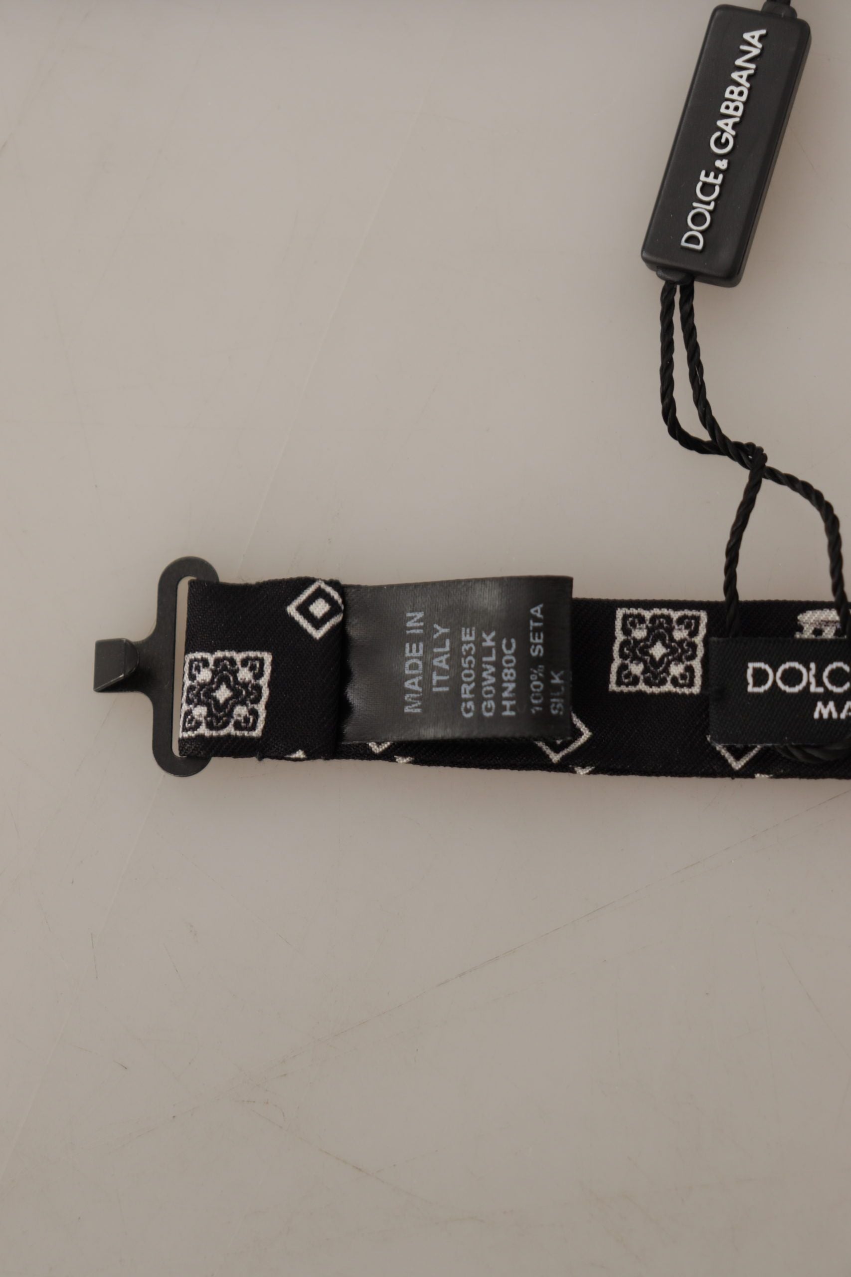 Unveiling the epitome of sophistication with our Dolce & Gabbana exclusive bow tie. This stunning piece promises to elevate your formal attire, with its captivating black crown pattern and luxurious 100% silk fabric. Perfect for gala events or a gentleman’s evening out, this bow tie boasts an adjustable neck strap promising a flawless fit for any occasion. Crafted with the finesse Italy is known for, it’s the accessory that leaves a lasting impression.