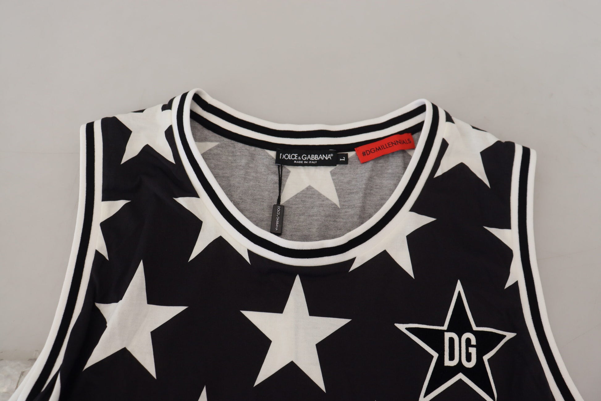 Step into effortless style with this exquisite Crew neck T-shirt from the fashion powerhouse, Dolce & Gabbana. Crafted with finesse in Italy, this tee showcases an edgy black and white star DG logo print, making it a striking addition to your casual wardrobe. Cut in a regular fit and made from the softest 100% cotton, this sleeveless top promises comfort with a touch of luxury. With meticulous detail to the logo, it’s a true representation of the brand’s commitment to high-end fashion. Elevate your t-shirt game with this eye-catching must-have.