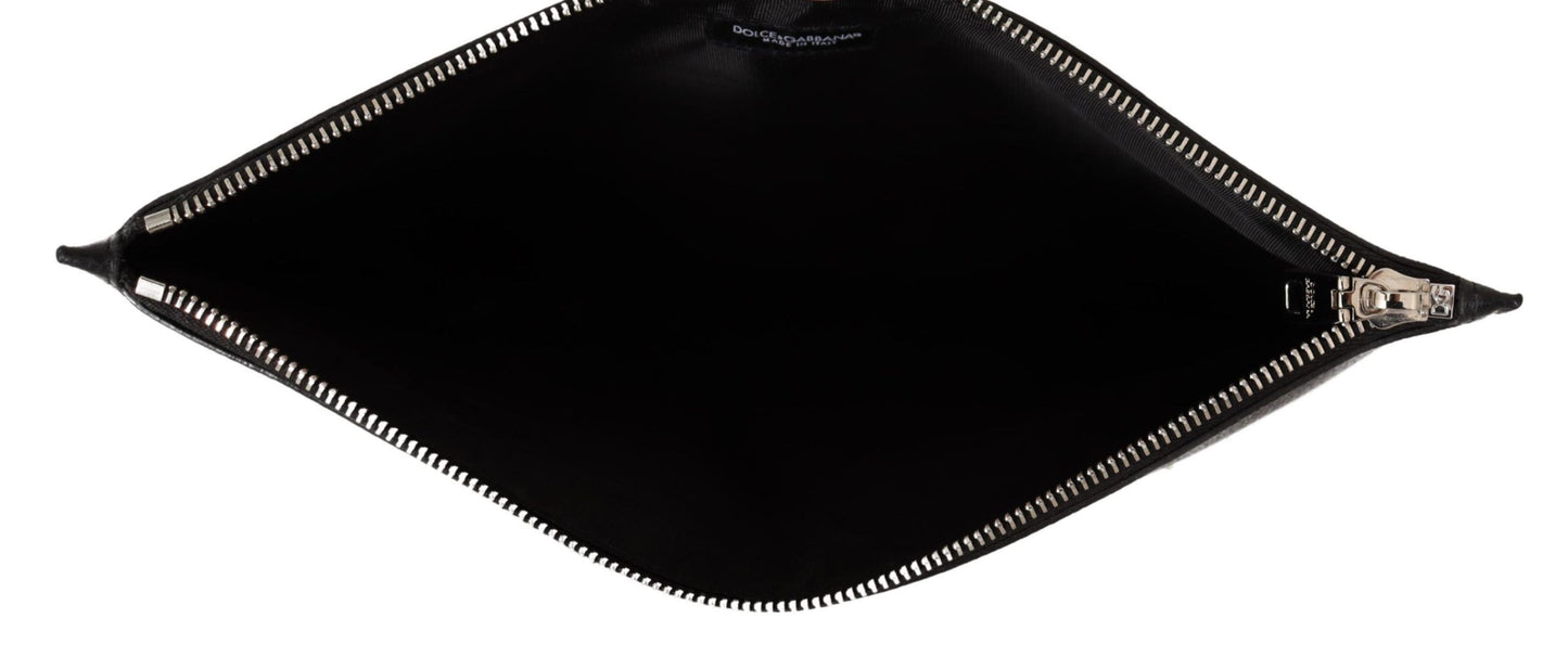Indulge in the epitome of sophistication with this stunning, 100% authentic Dolce & Gabbana leather pouch. Complement your ensemble with this black, sleek accessory featuring eye-catching silver-tone hardware embellished with artistic appliques. Perfectly fusing functionality and designer flair, this pouch doubles as a clutch for evenings or a toiletry bag for travel. Crafted in Italy with impeccable attention to detail, it is an essential piece for the discerning fashion connoisseur.
