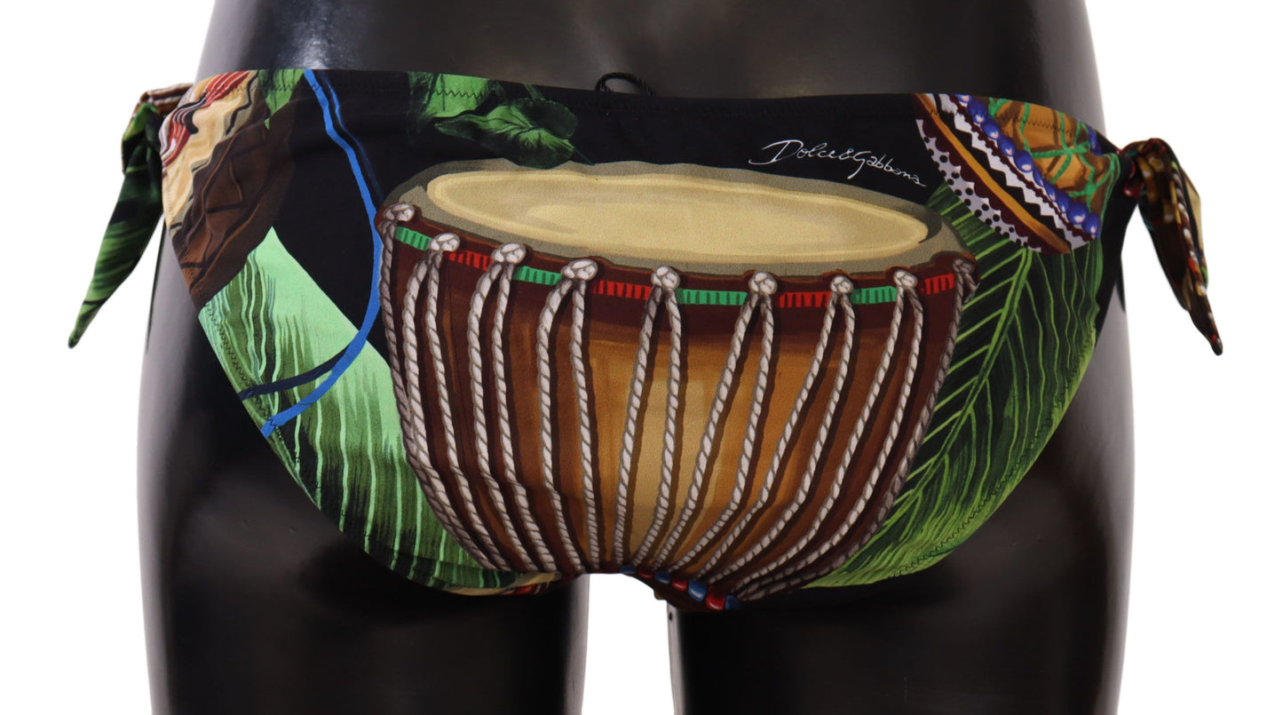 Indulge in the epitome of beachside elegance with these chic bikini bottoms from Dolce & Gabbana. Featuring a distinctive drum print, this piece is perfect for fashion-forward sun-seekers looking to make a statement. Crafted from a comfortable blend of nylon and elastane, these bottoms promise to provide both style and a flattering fit for your seaside adventures. Adorned with the brand’s iconic logo, they encapsulate luxury down to the last detail. Embrace la dolce vita on your next getaway.
