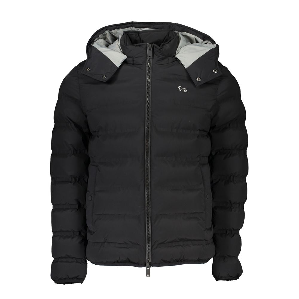 Discover the epitome of style with this Harmont & Blaine black jacket crafted for the modern man. Combining both class and convenience, this jacket features a versatile removable hood, practical for shifting weather conditions. Secure your essentials in the two external or two internal pockets while enjoying the ease of its zippered front. Its detailed application and subtle branding add an exclusive touch that elevates your everyday wardrobe.