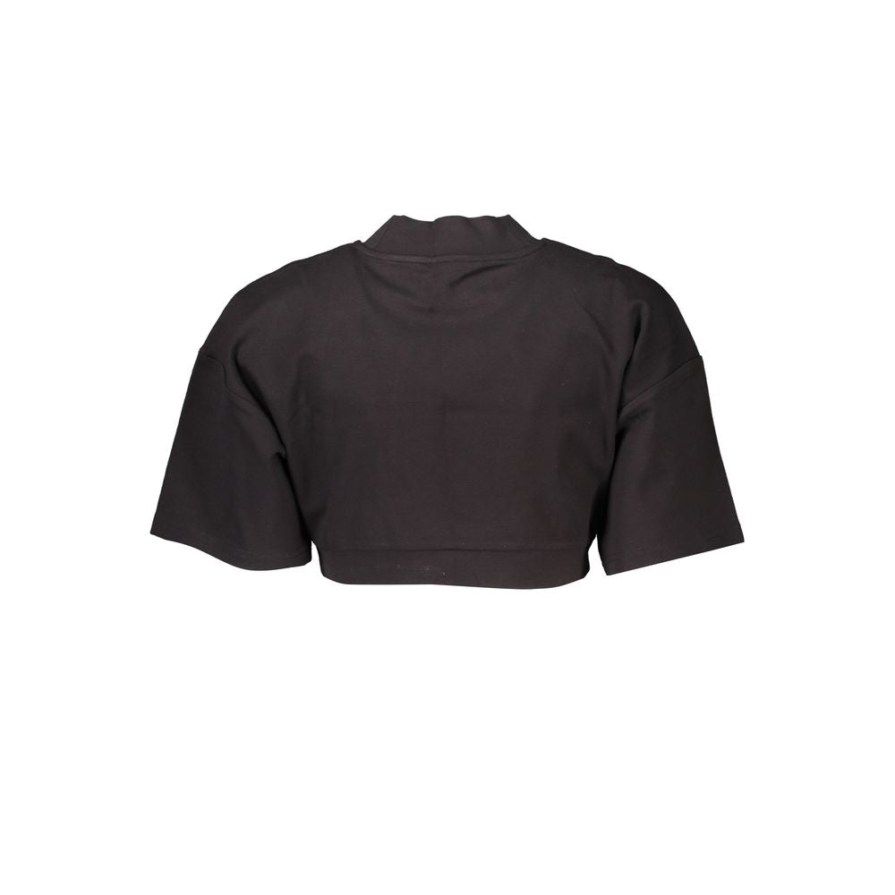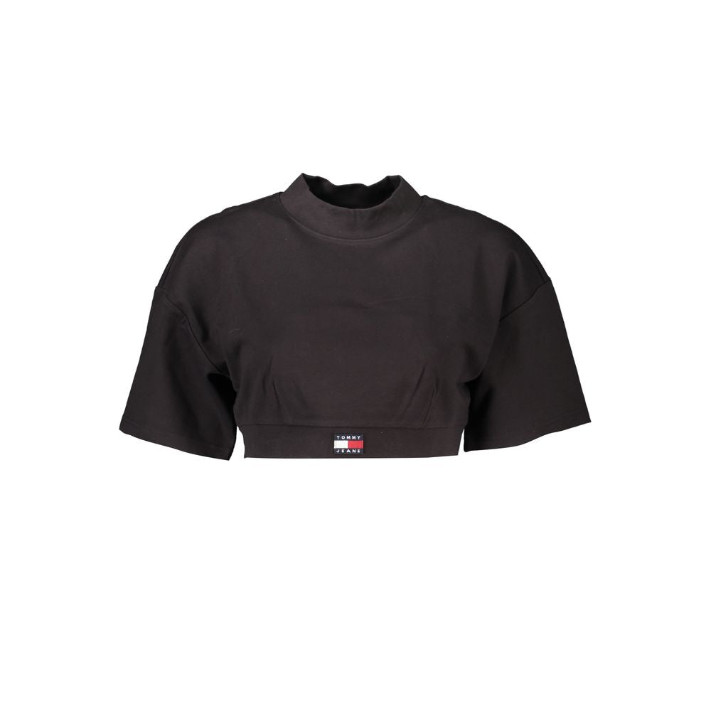 Step into effortless style with this pristine black top from Tommy Hilfiger. Featuring a flattering high neck and a snug elastic waist, this short sleeve t-shirt is adorned with an intricate application that showcases the iconic Tommy Hilfiger logo. Perfect for both casual outings and dressier events, this top is a versatile addition to any wardrobe.