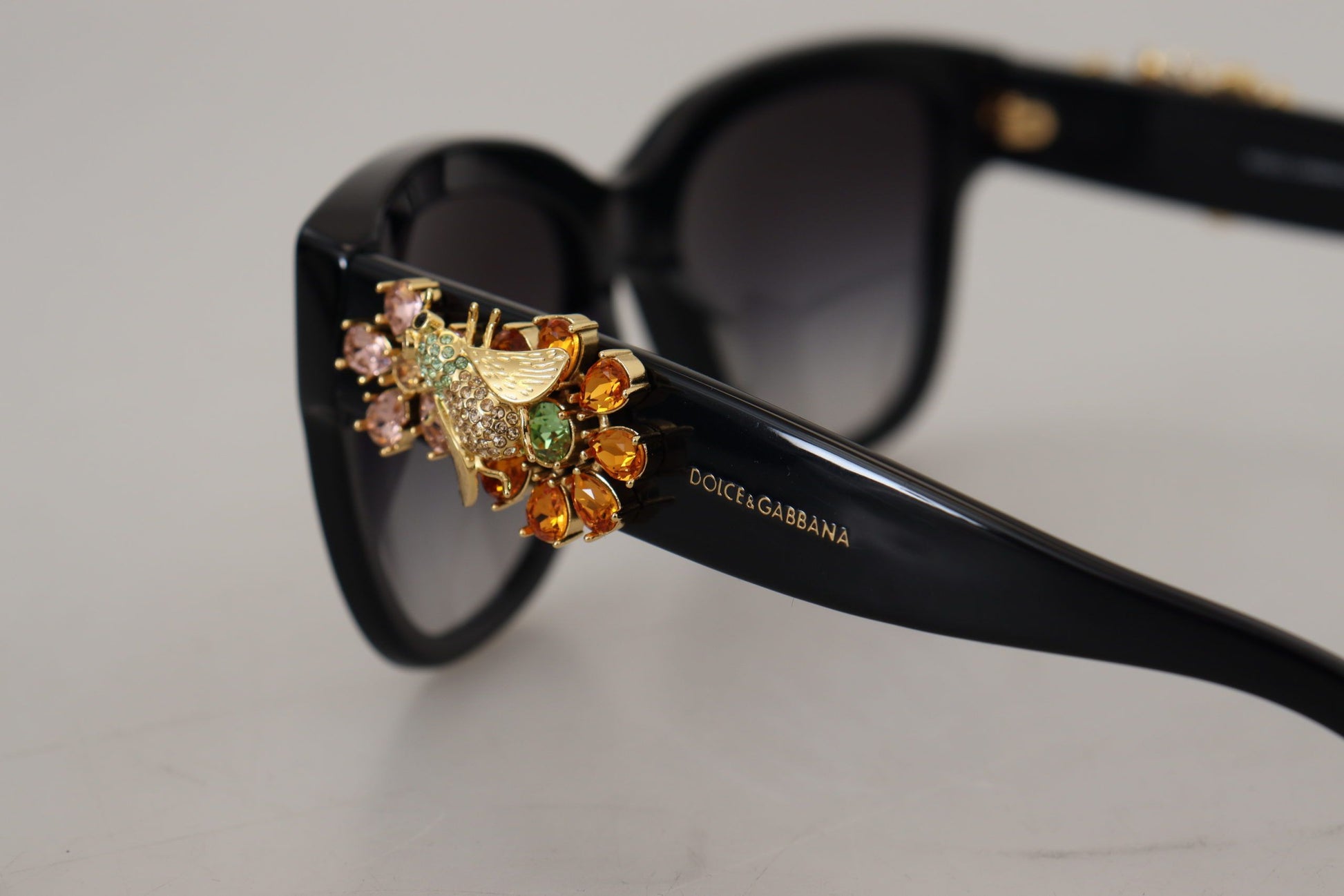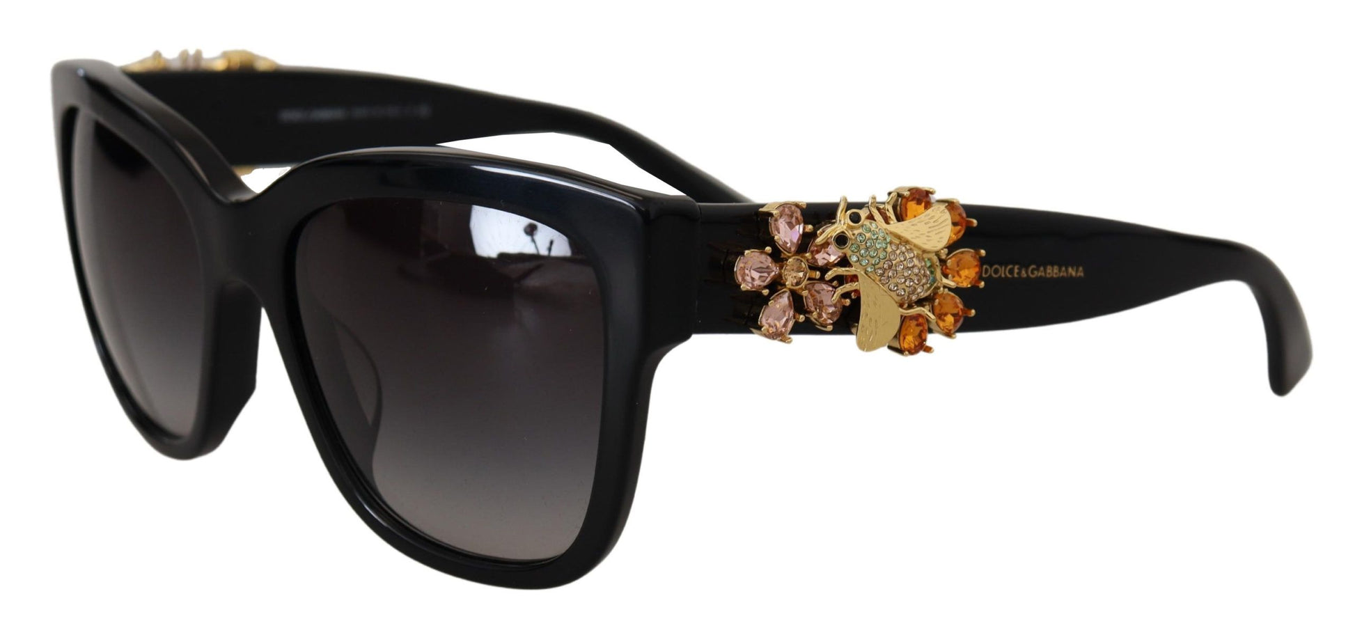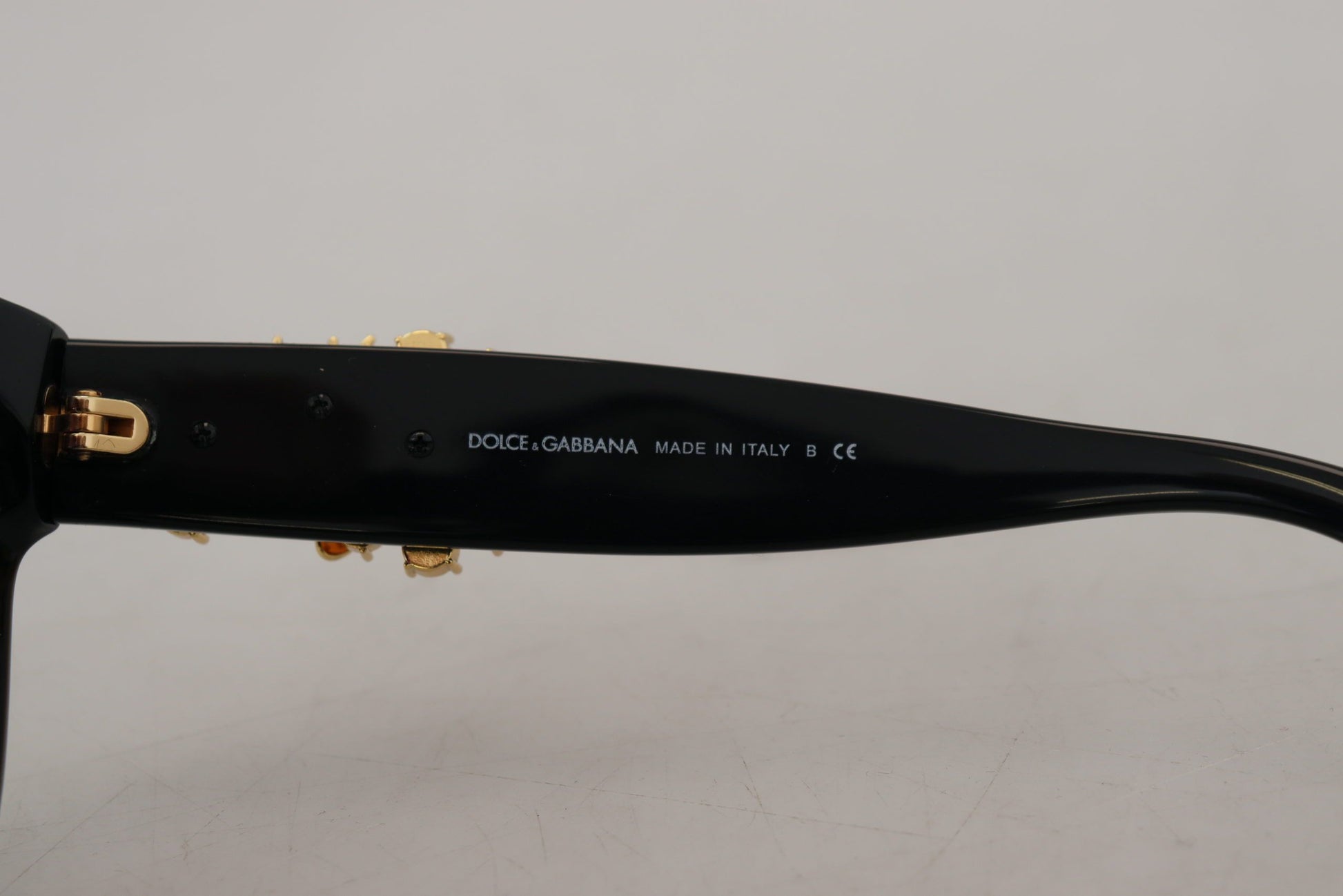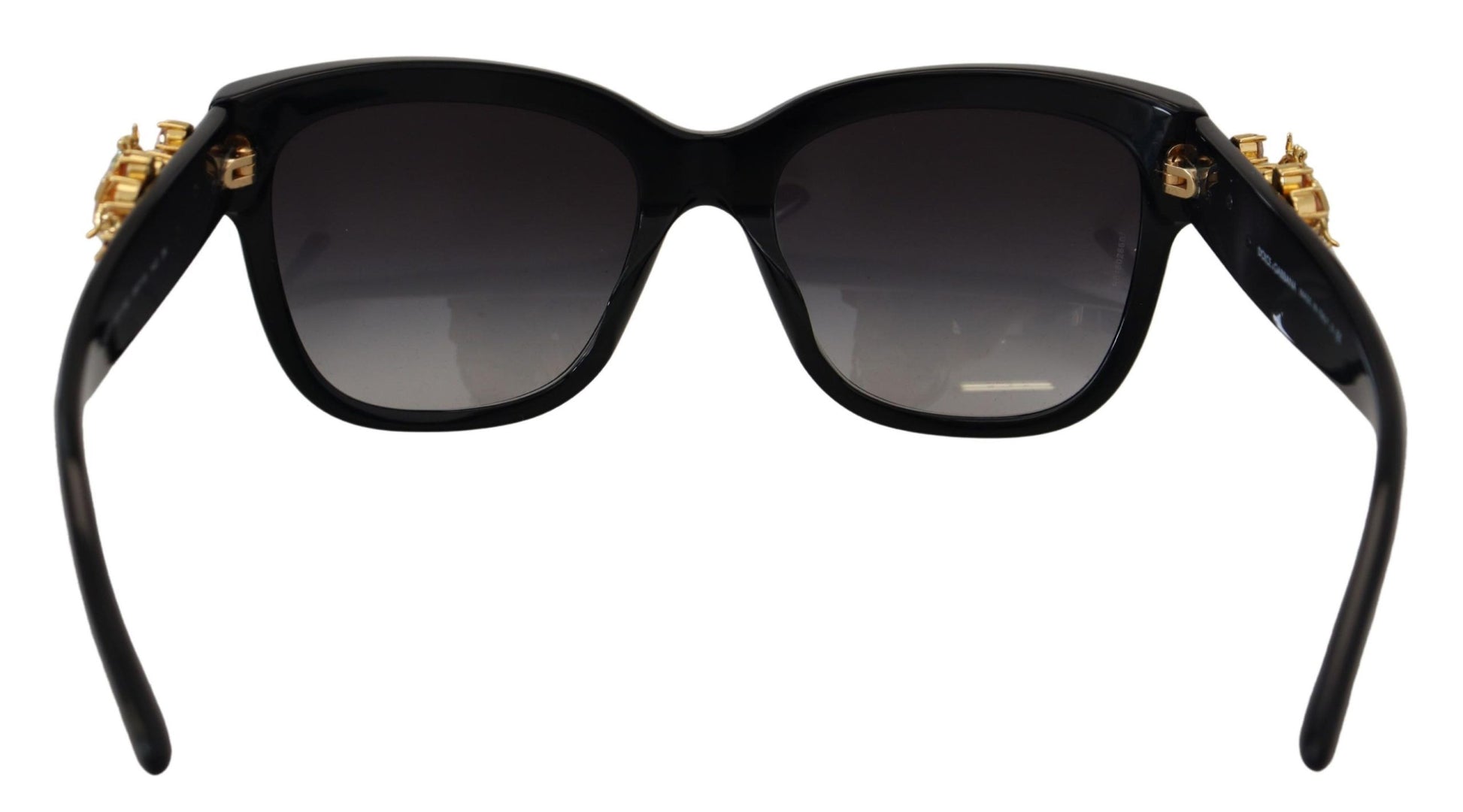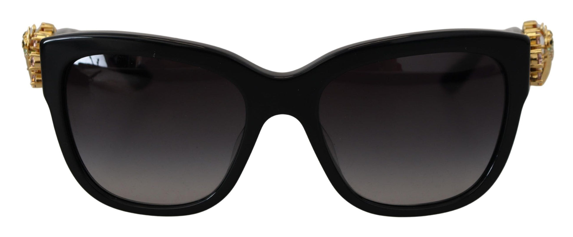 Indulge in the epitome of luxury eyewear with these exquisite sunglasses by Dolce & Gabbana. Boasting a stunning full-frame design in classic black, these shades are intricately accented with gold-tone hardware and glamorous embellishments along the temples that capture the light with every turn. With their designer label proudly on display, they offer a perfect blend of fashion and function, ensuring 100% UV protection with their sleek gray lenses. A must-have accessory crafted in Italy, these sunglasses are a true testament to Dolce & Gabbana’s dedication to elegance and quality.
