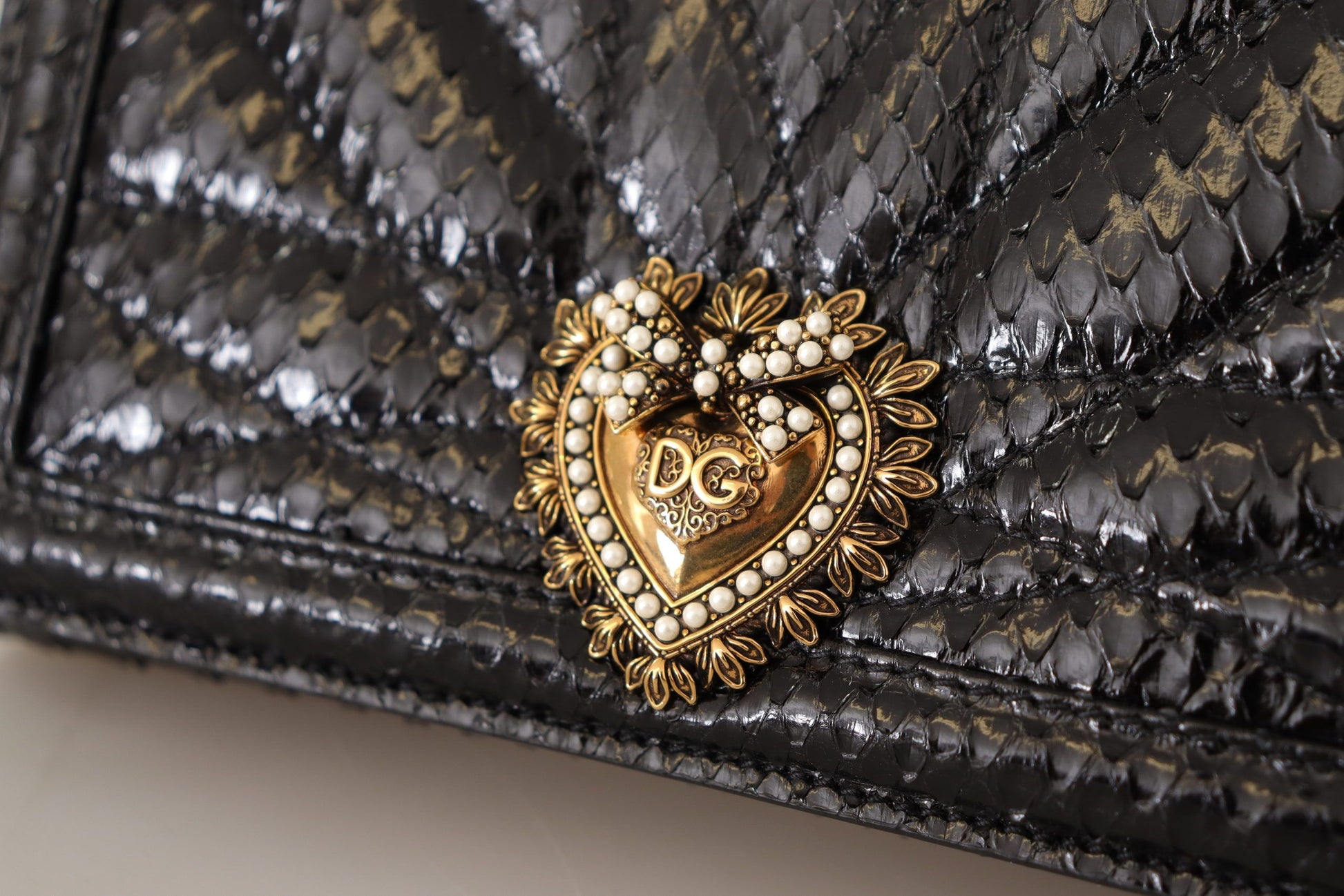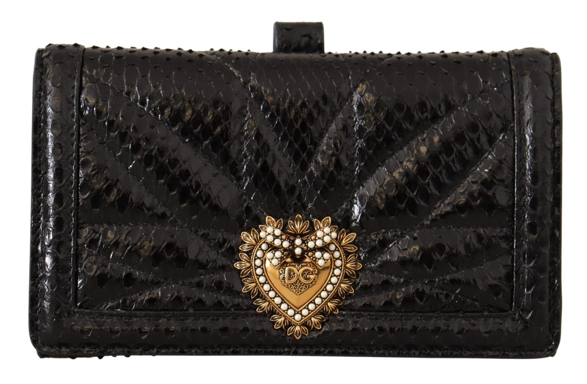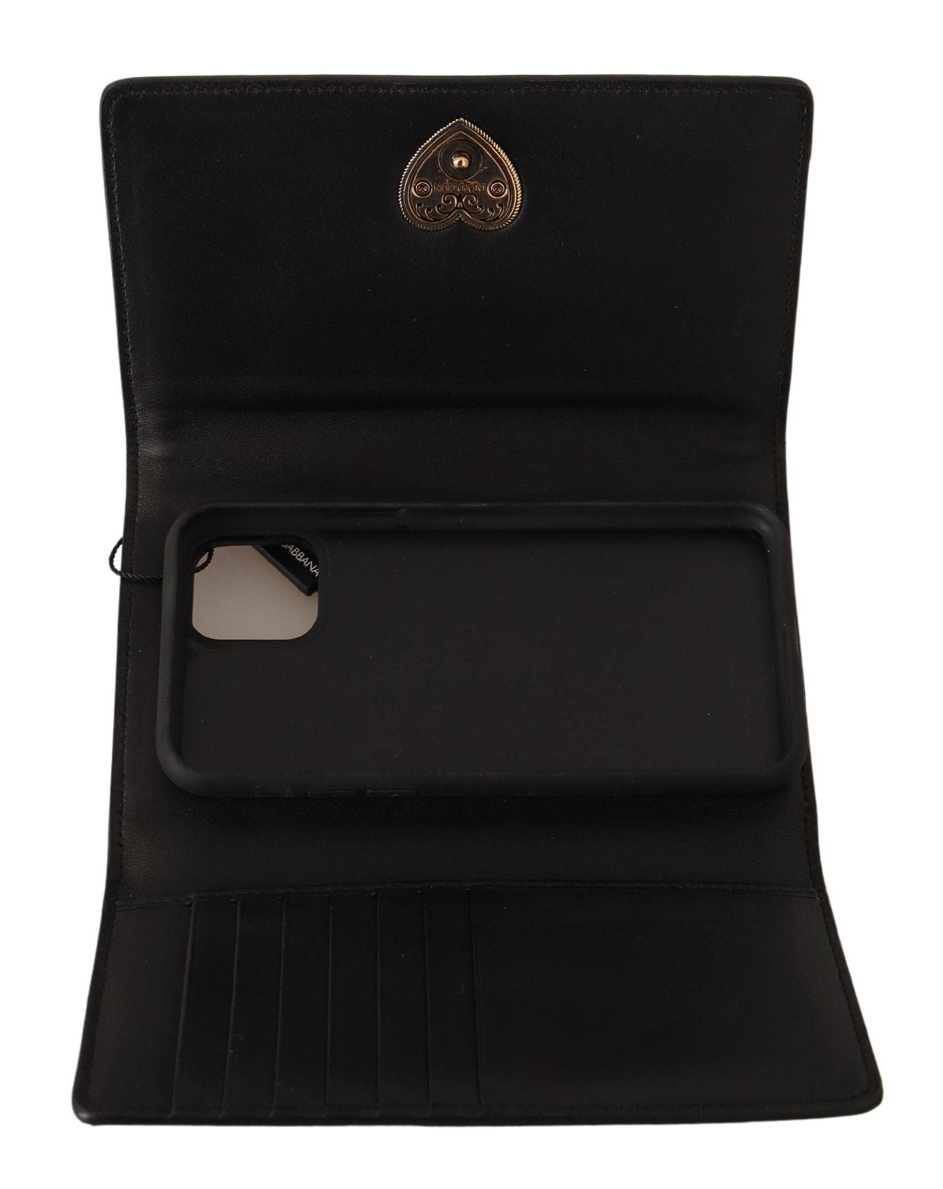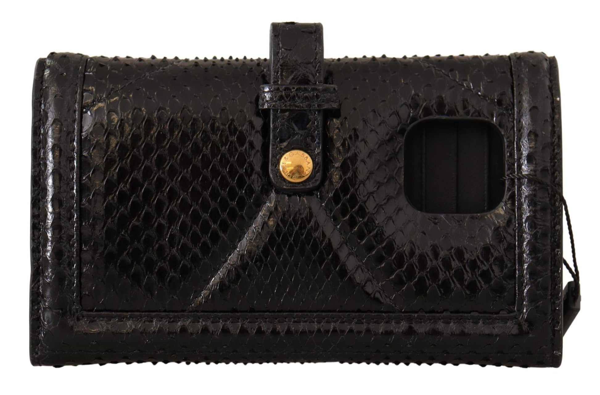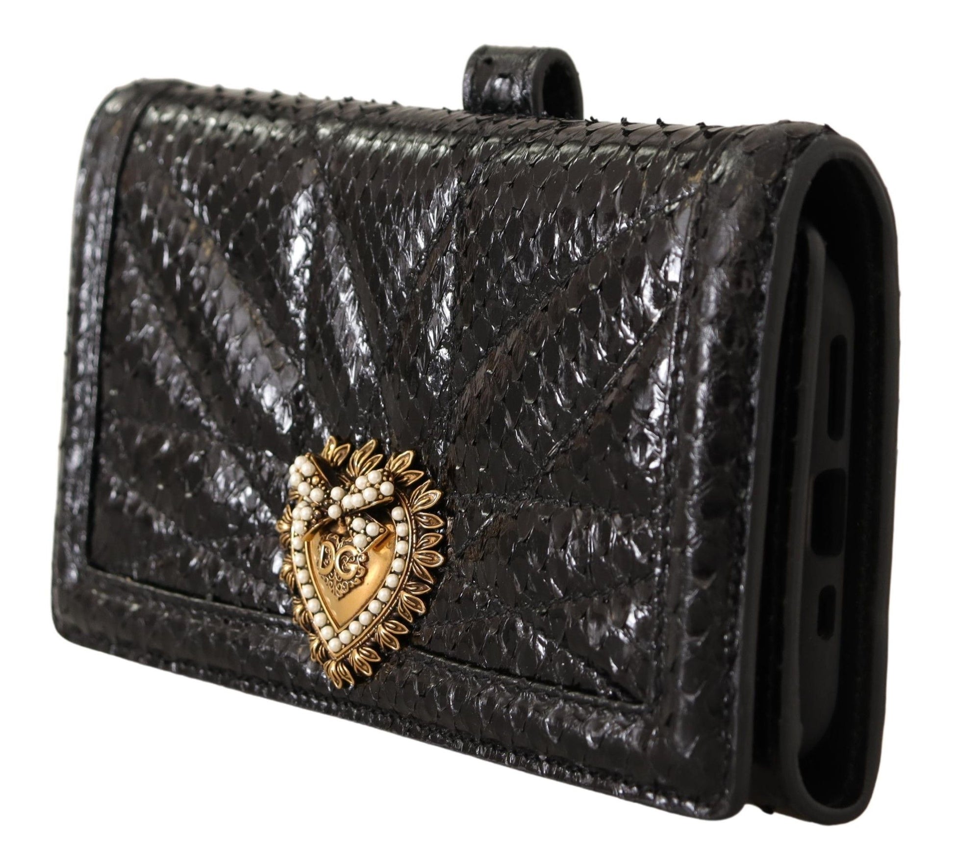 Indulge in the epitome of luxury with this striking Dolce & Gabbana iPhone 11 Pro wallet case. Crafted from the finest 100% exotic python skin, this essential accessory is not only a protective haven for your phone but also doubles as a stylish wallet. Its sleek black hue is accented with elegant gold metal detailing, embodying sophistication with every detail. Perfect for the fashion-forward individual who appreciates luxury and functionality.