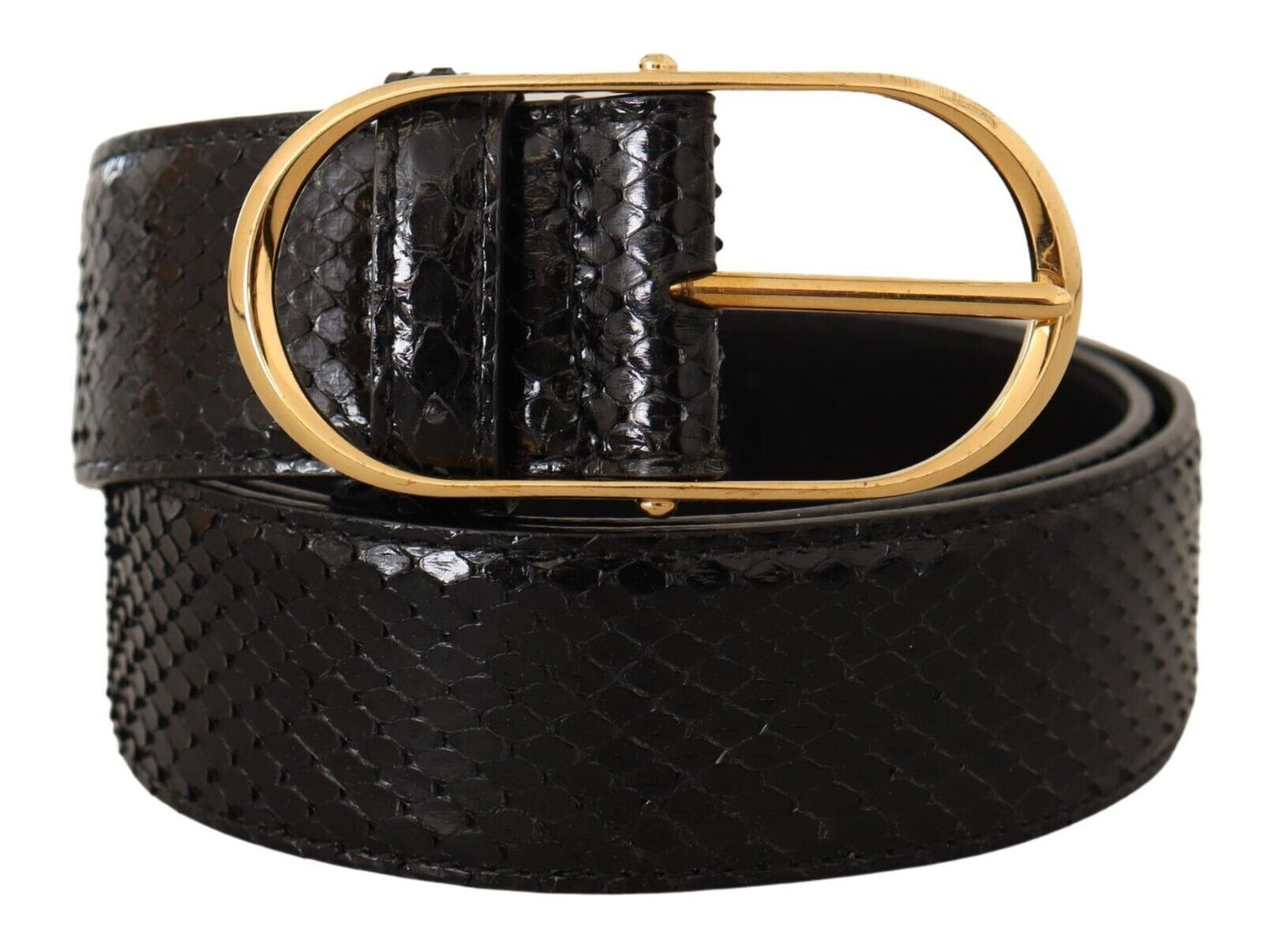 Exude elegance and enhance your ensemble with this stunning 100% Authentic Dolce & Gabbana belt. Boasting a sophisticated black python snakeskin and a lustrous gold oval buckle, this accessory is a testament to exquisite Italian craftsmanship, perfect for the discerning fashionista.